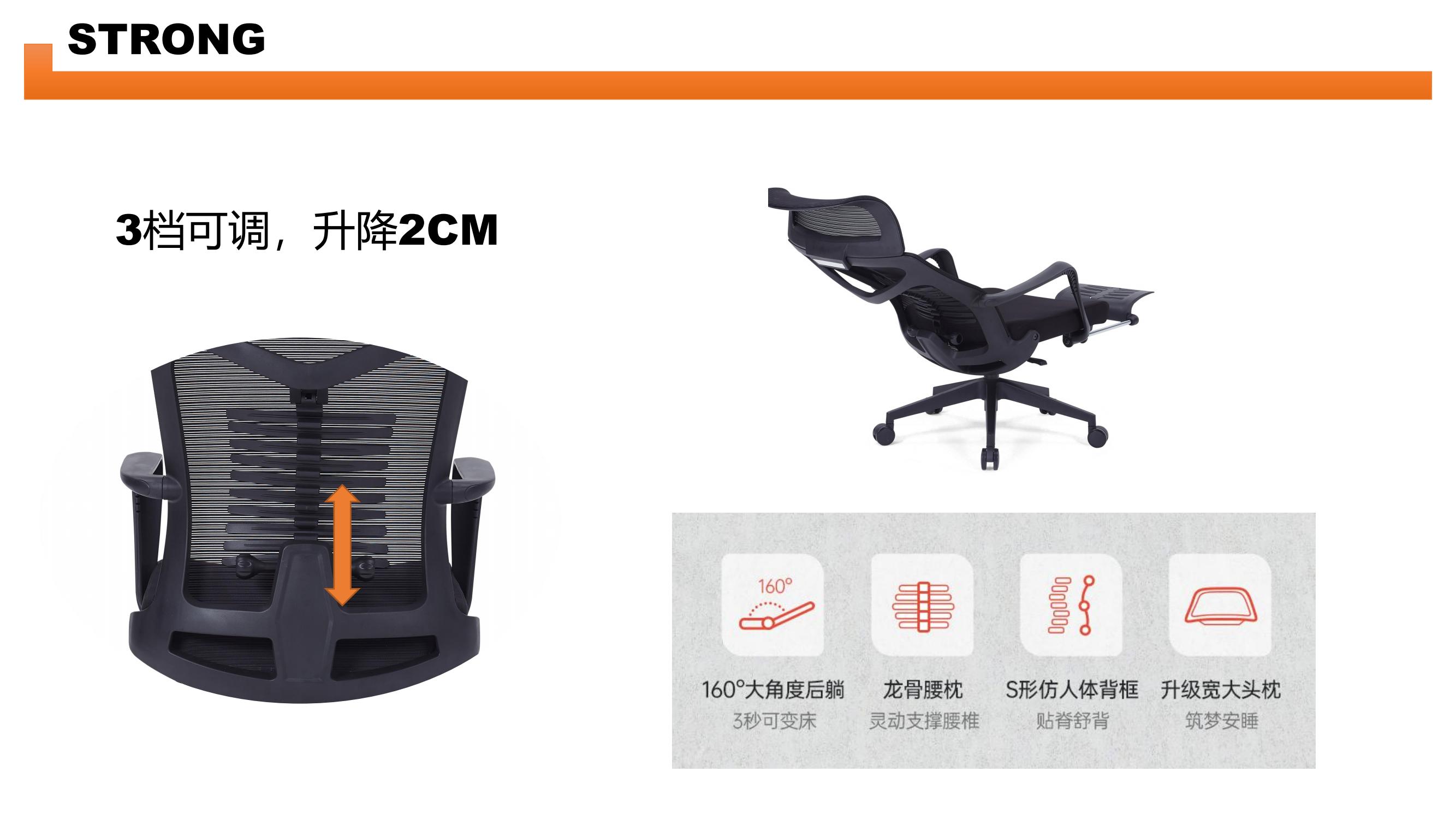 165° 大角度后躺 3秒可变床 S形仿人体承托每一处脊椎,符合背部支撑受力,帮助释放腰背压迫感。 全网镂空头枕,亲肤透气,凉爽一夏。 自适应联动扶手,手臂坐躺皆支撑 跟随椅背后仰角度自然调节,时刻支撑肘部,放松手臂