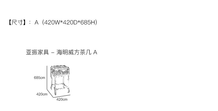 亚振家具 - 海明威方茶几 产品尺寸/示意图