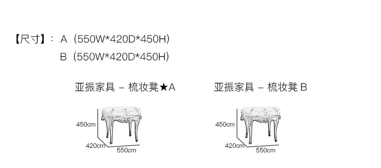 亚振家具 - 梳妆凳 产品尺寸/示意图