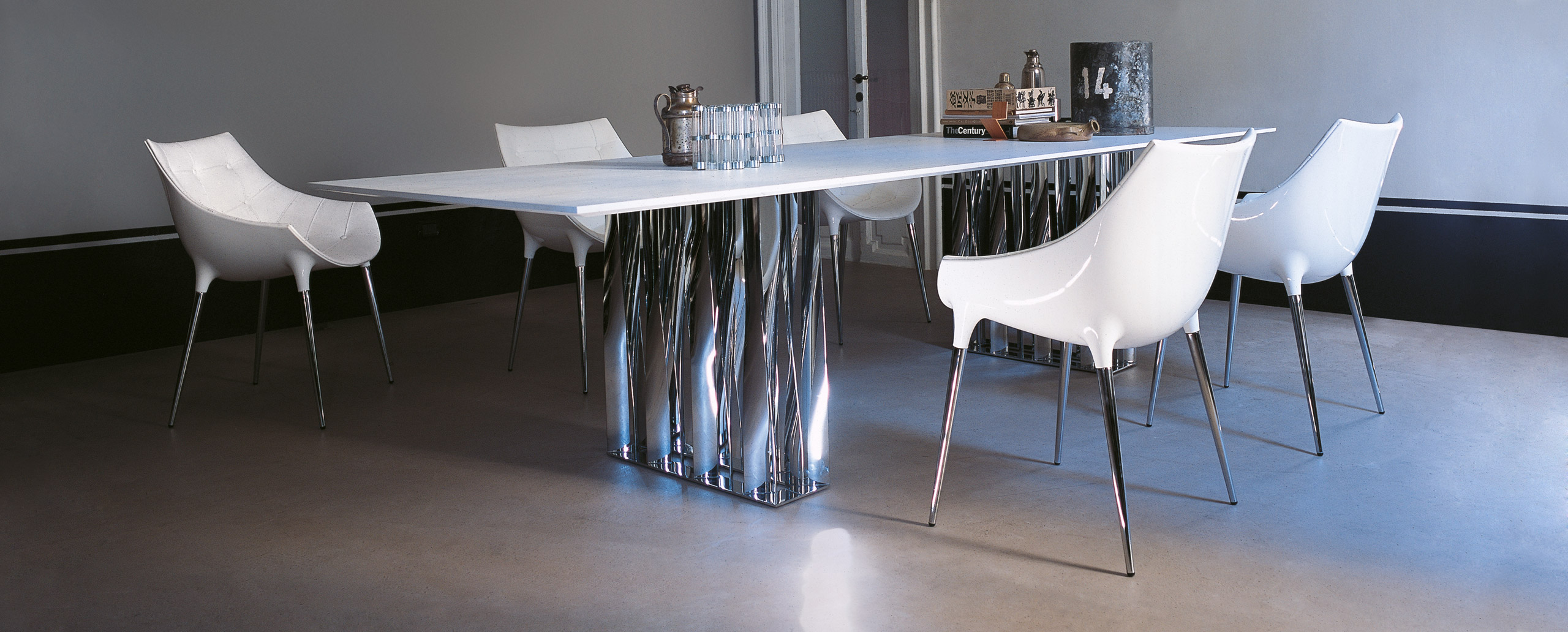 充满幽默创意的设计风格,以简单趣味的方式丰富使用都的生活经验,将设计理念深植到生活当中的他,从早期的建筑、室内设计、产品设计、甚至跨足流行领域,都充分展现他与众不同的才华。Starck 从未局限自己的设计领域,甚至勇于挑战(少即多)的设计金科,斯塔克的设计作品通常是有机型、情感丰富而且使用相当独特的材质混合。其作品的广度亦无人出其右,小至牙刷、板凳,大至整个建物造景,都有他的作品,是个既多产又创新的设计巨星.
