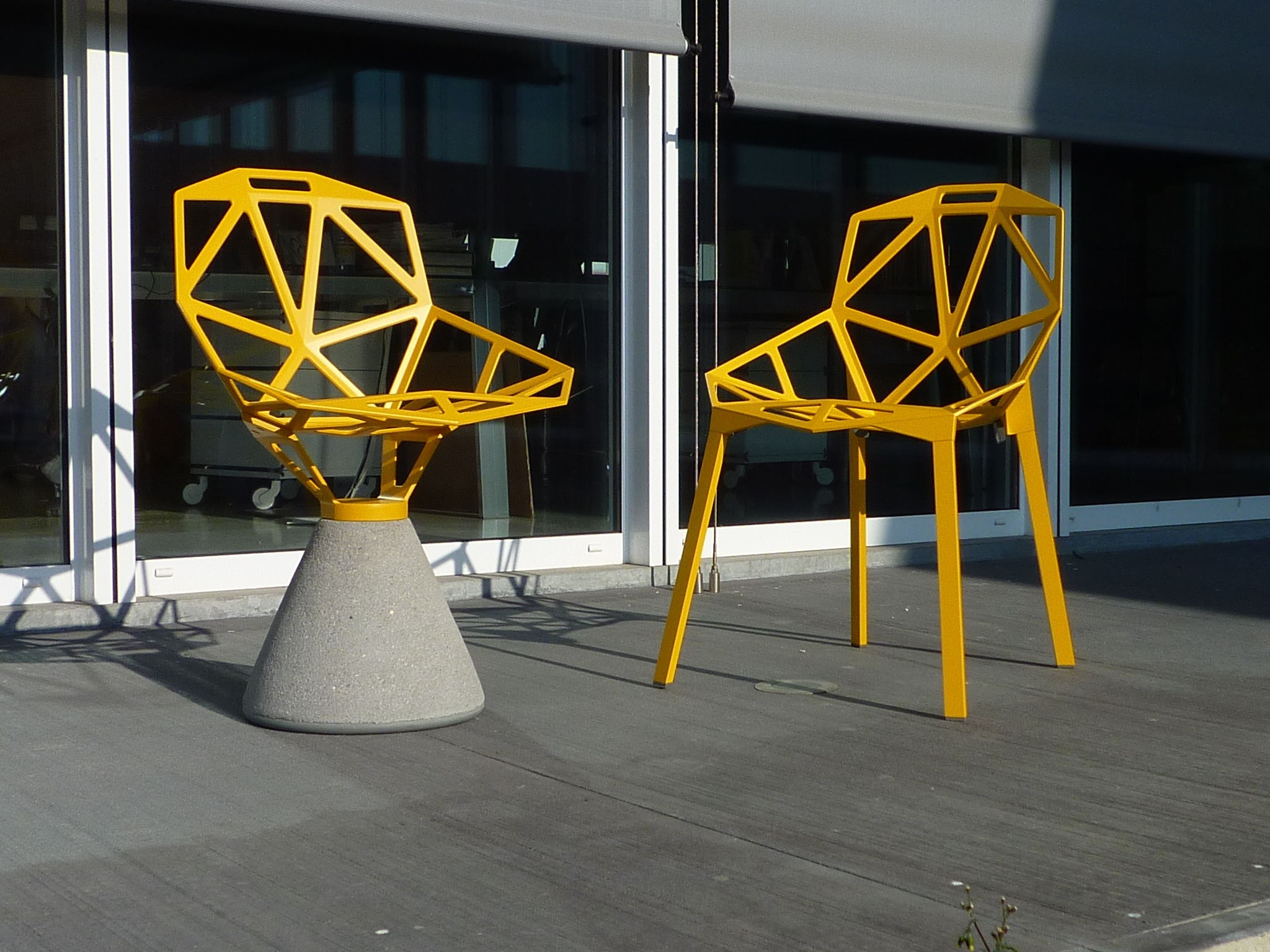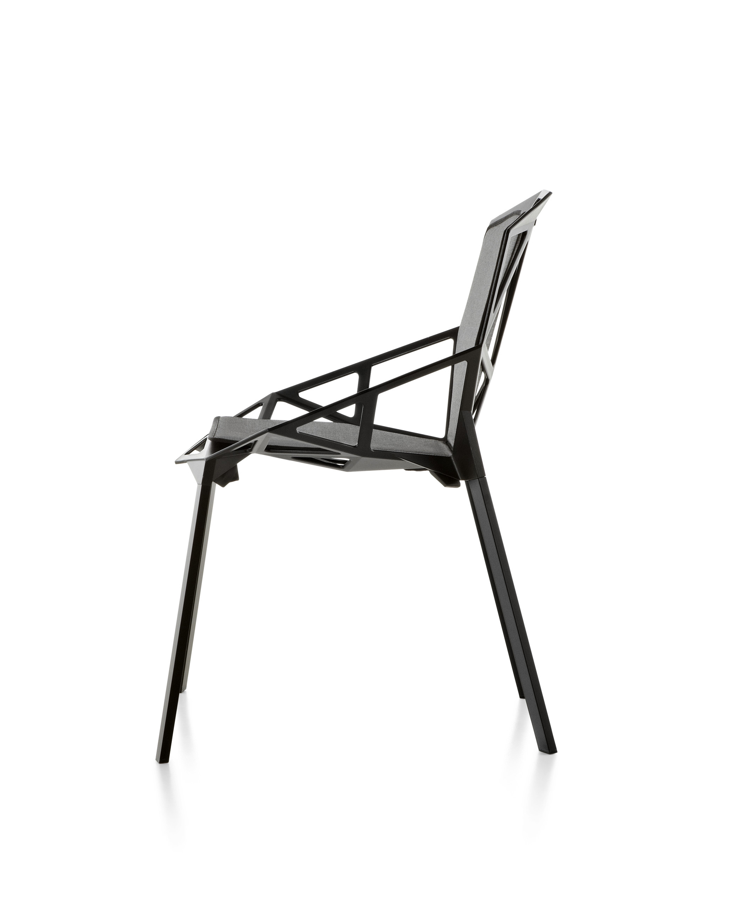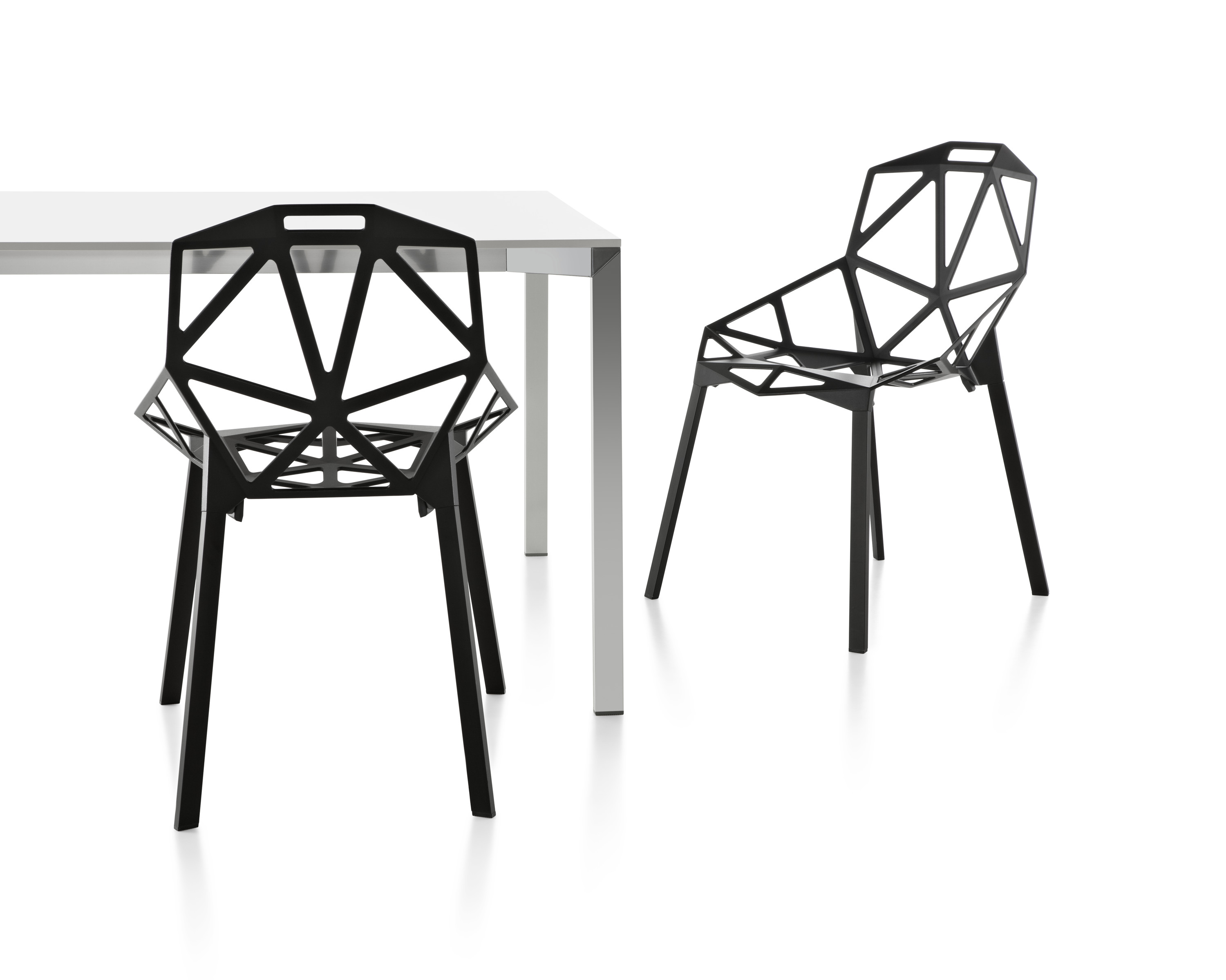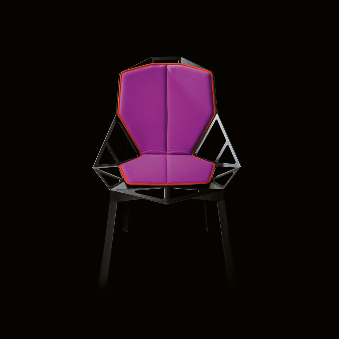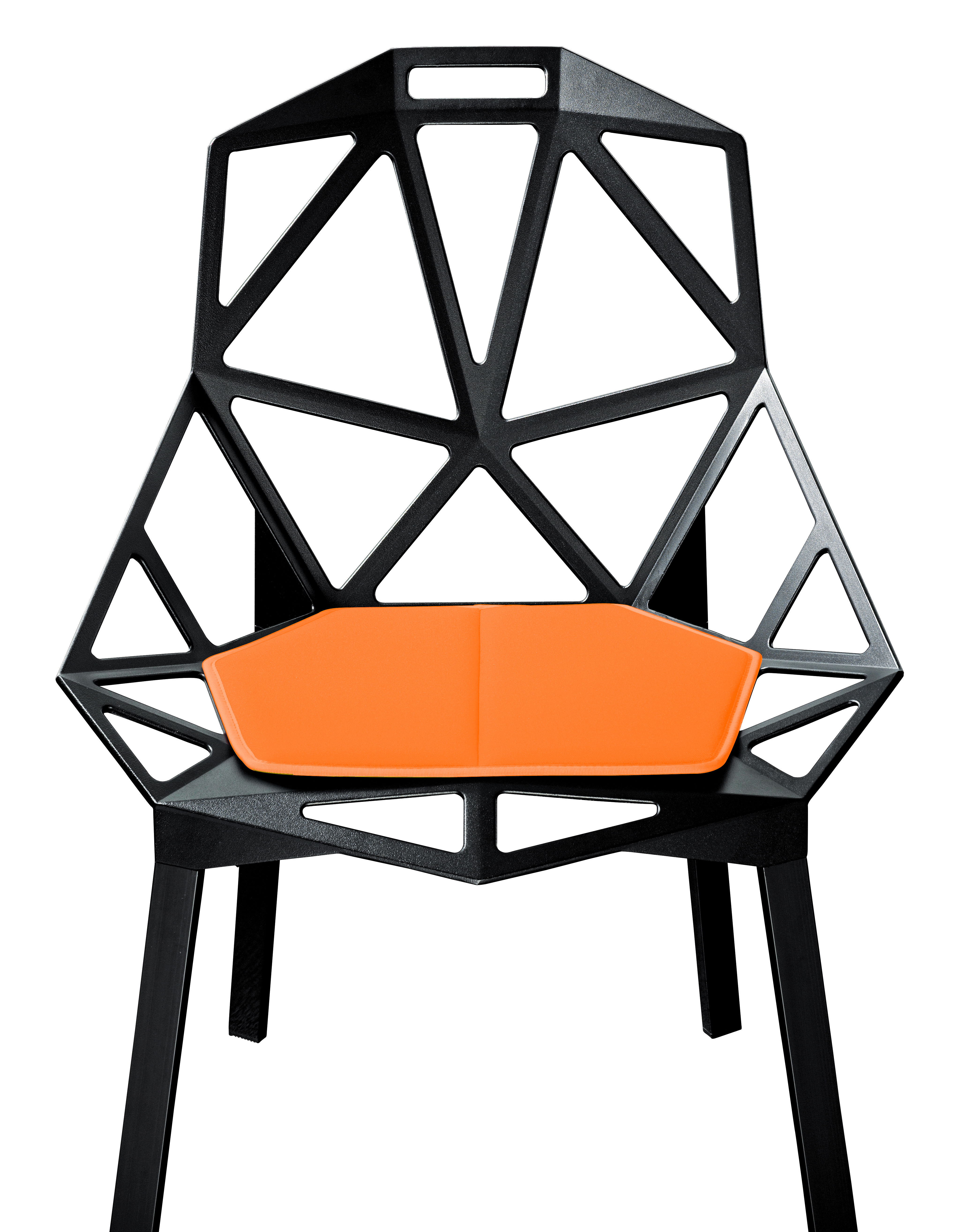 最受瞩目的德国设计师Konstantin Grcic 应邀为MAGIS 设计的Chair One(几何吧椅),是设计生涯中最具有标志的产品之一。办公椅体为模铸铝合金结构,经过氟化钛镀膜与塑料粉末涂布。椅子具有阻燃性、抗腐蚀性。适合室内及室外使用。以铝金属与钛金属制成的 Chair One,以多个平面以不同角度组合而成,建立起立体的外型。多个中空的三角型组合而成的座椅,不但令为用家带来强而有力的承托结构,而且还能在简单设计之中带出不一样的风格。这把椅子的惊人形象难免使人对它的舒适度产生疑问,但当你真正坐于其上,你会发现它实际上非常舒适,那些稀疏的网状结构能够极好地支撑不同体型的人体,后背上的把手也非常实用。当你知道Chair-One最初是被当作户外用椅而设计的,你会更加佩服Konstantin Grcic的缜密用心:极少的表面可以杜绝雨水,并且减少灰尘堆积,夸张的形态则令它能够在街道、建筑或自然的环境中拥有自己美学上的存在,而不是被环境所吞没。Konstantin Grcic花了三年时间设计Chair One,自2003年诞生以来,堪称Grcic精简主义风格的代表作。2006年,Chiar One为Konstantin Grcic赢得了德国政府的设计大奖。