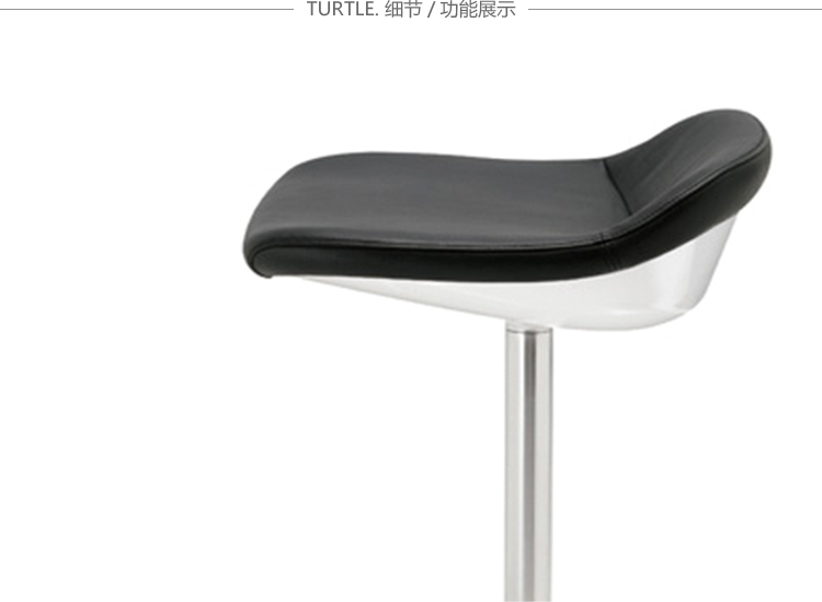 Turtle系列的吧椅特征集中在它小巧的身体上。内部支持的桶可以提供安全的支撑同时脚踏板是最完美的延伸线。旋转底座是一个扁平的底座。外壳可以用白色或黑色塑料,也可以用织物或皮革覆盖。