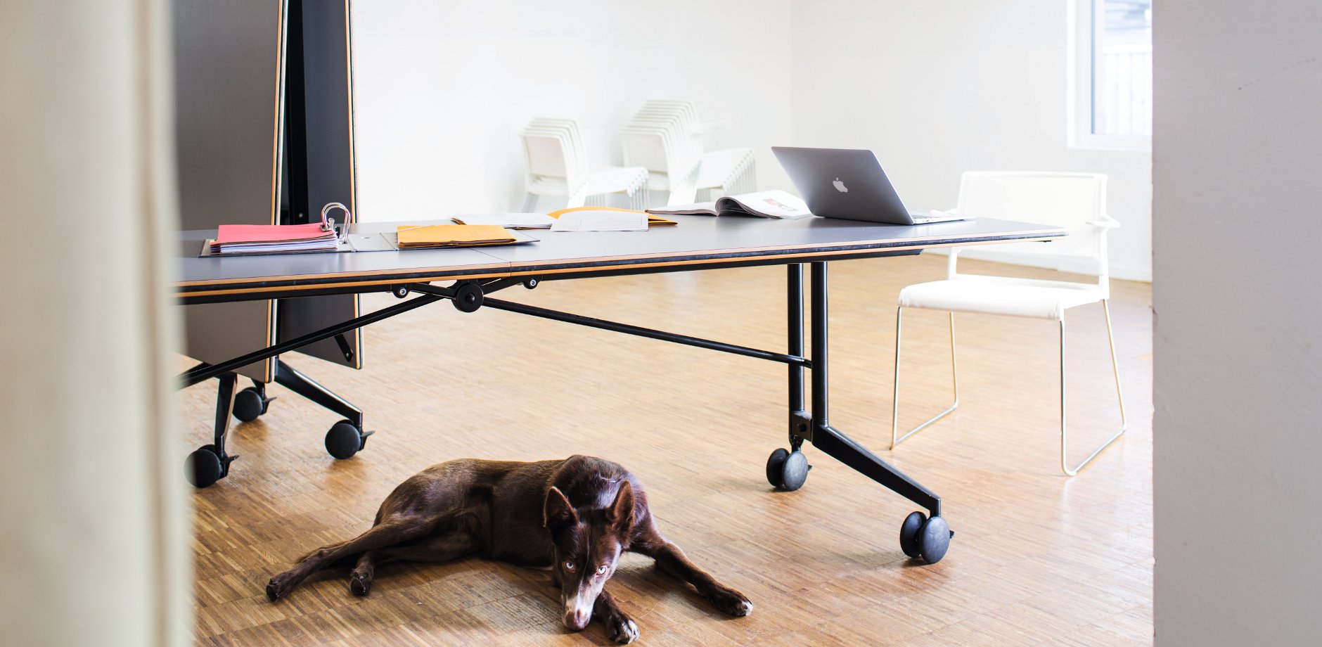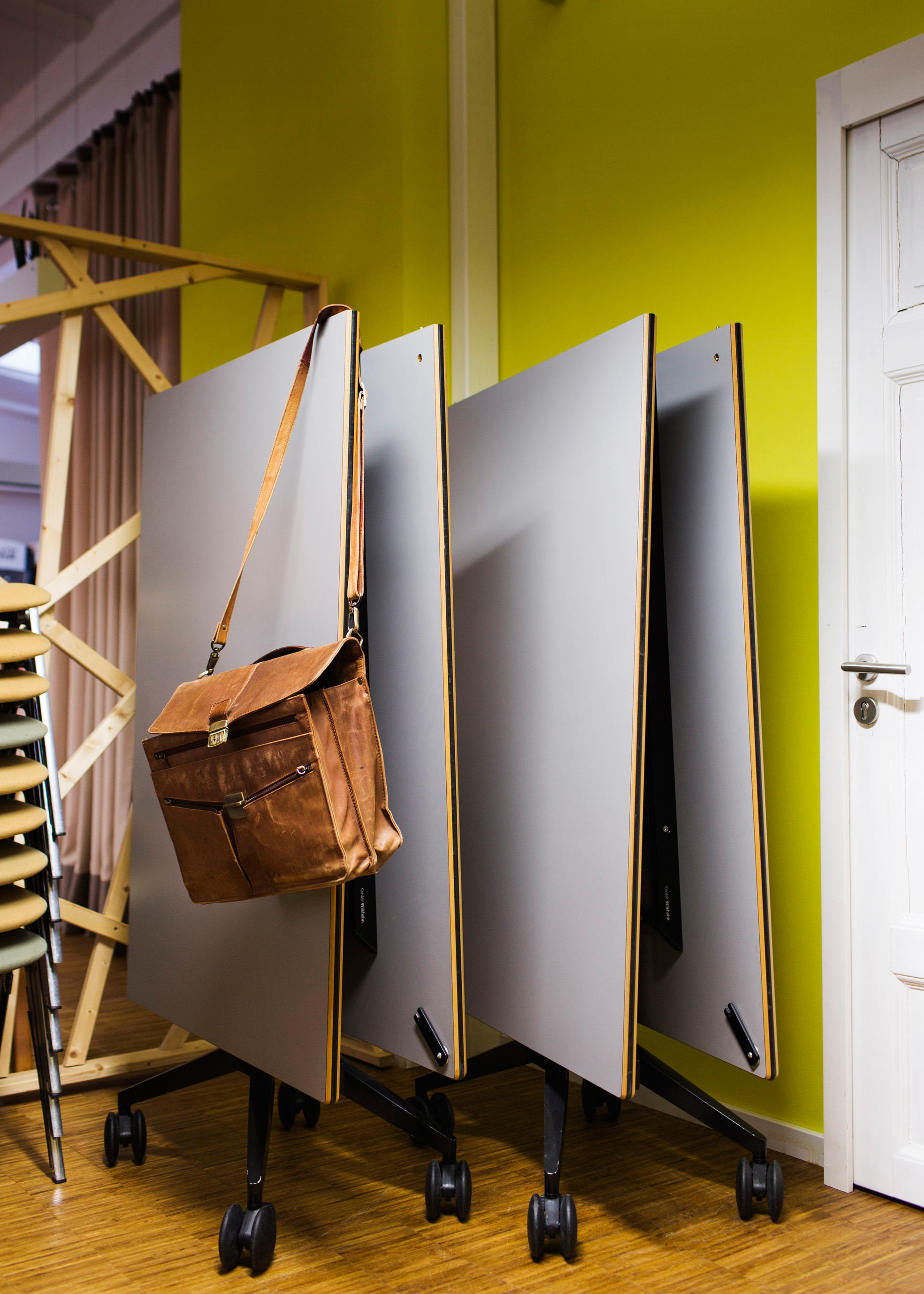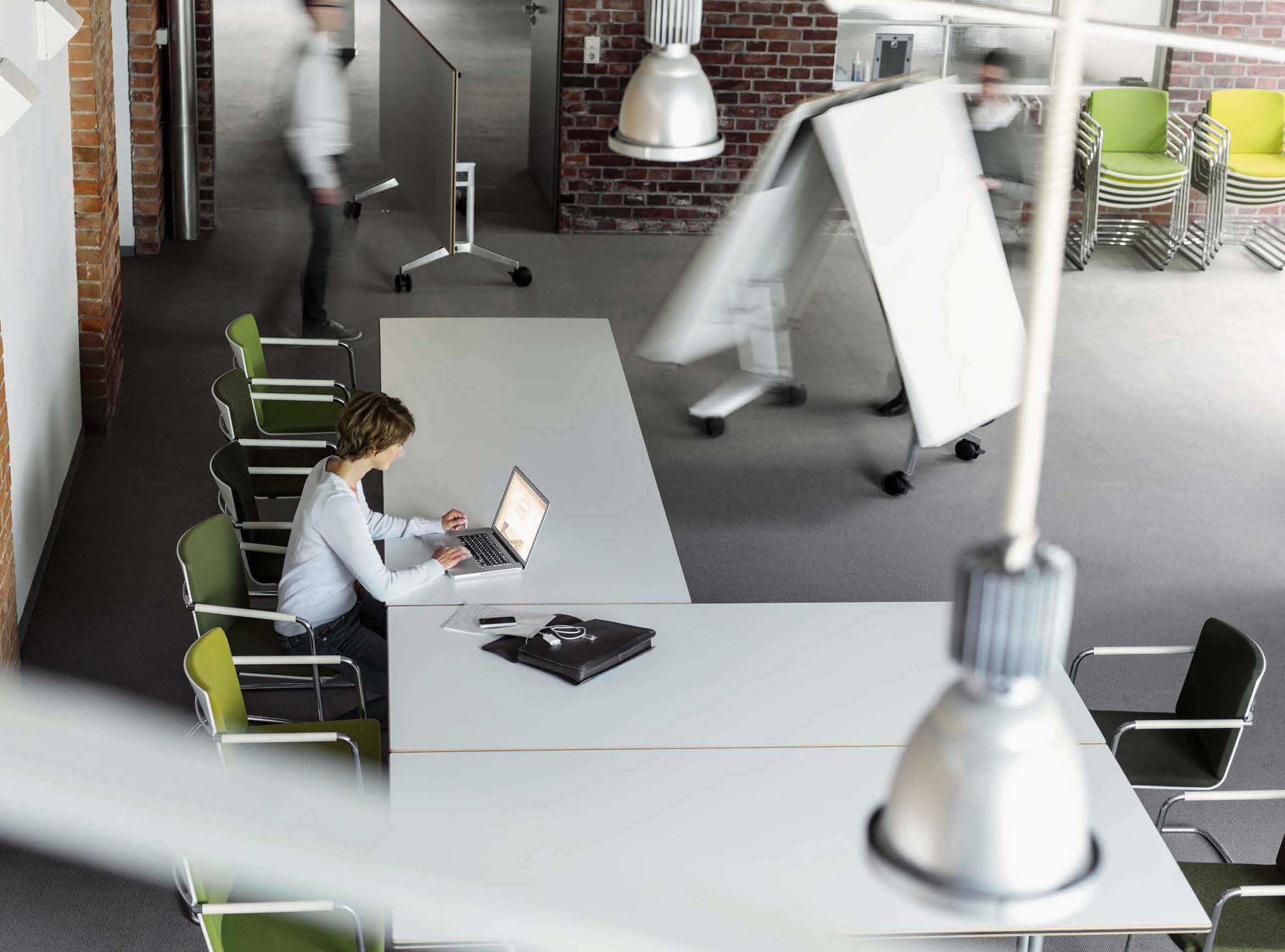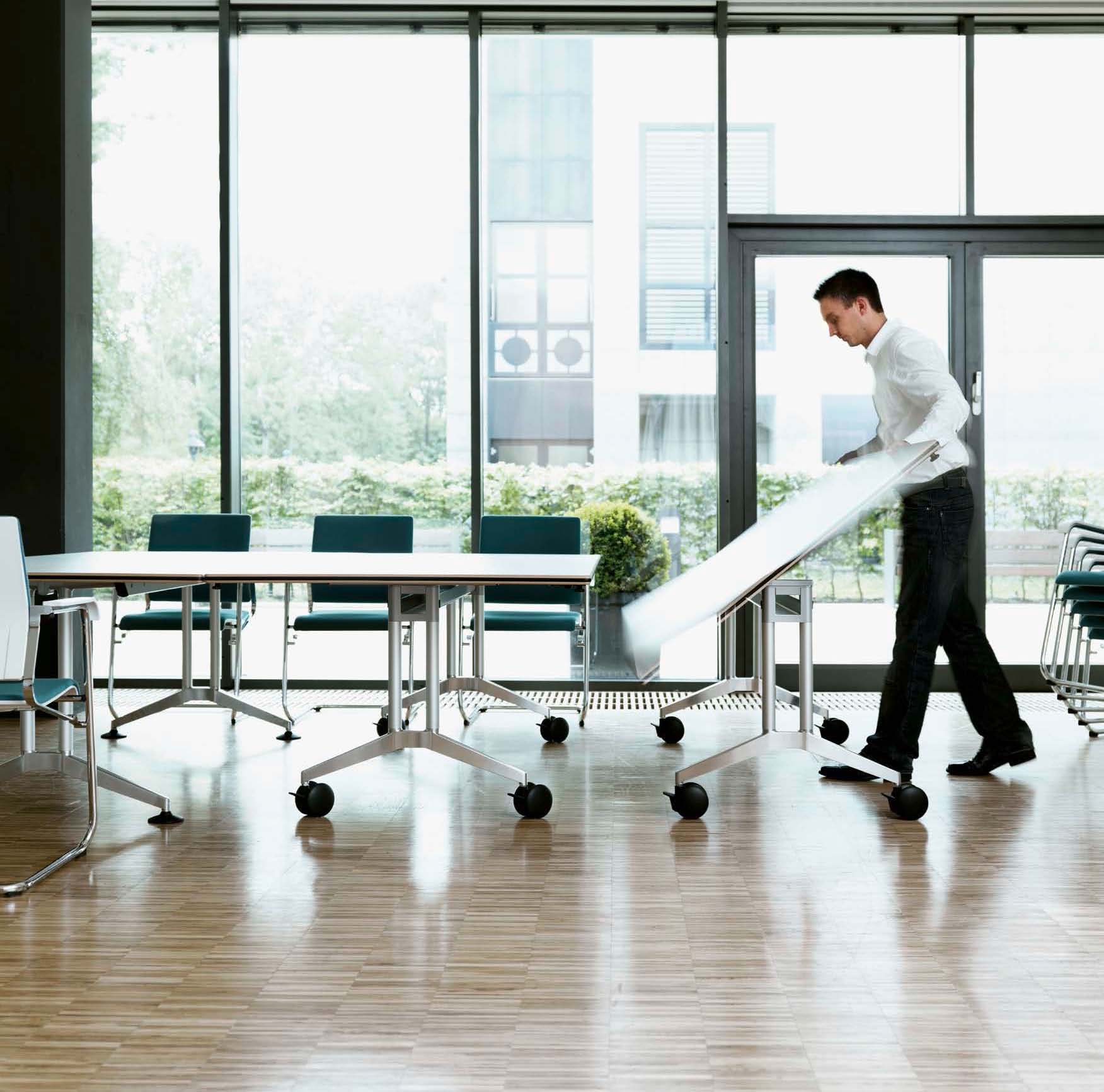 这张桌子在节约空间方面有着出色的设计。分工合作、灵活的团队合作以及自由职业者与项目团队的短期整合已经成为我们日常工作的一个组成部分。也就是说,这是在工作环境必须体现出来的时候了。这就是为什么我们设计了一张能容纳个人或者八人组的会议表。它可以简单地与其他个人桌子连接起来,形成一个会议桌,并且可以在不需要的时候立即折叠起来,放置在房间的一侧。因此,每个人都可以像环境所允许的那样富有创造力。