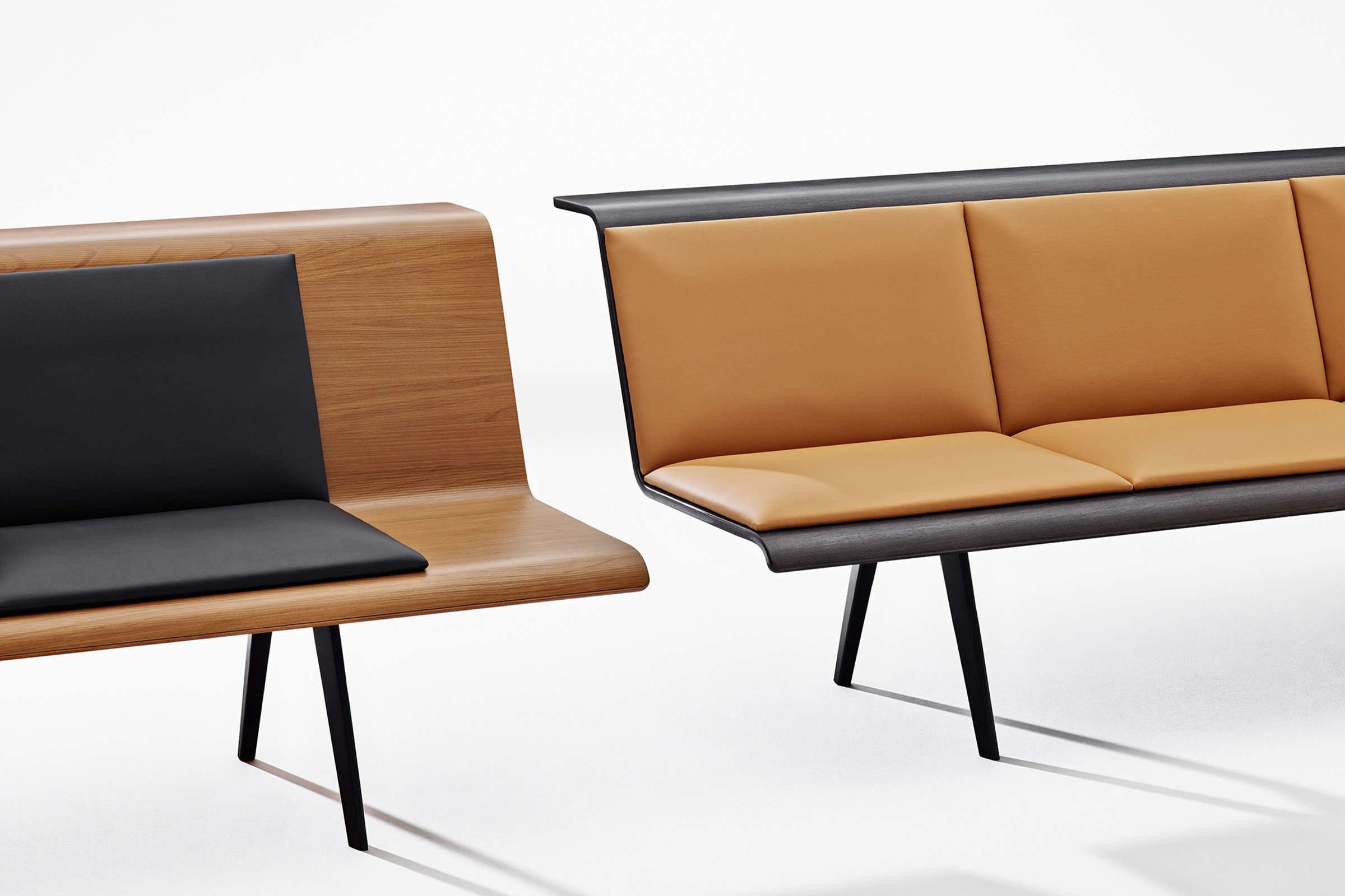 Zinta由木质外壳衬垫,用于收缩或垫子,以便在选定的一组织物中提供更加容纳的座椅。多种尺寸,材料和填充允许多种组合和应用。贝壳采用天然,棕色和深色橡木制成的木饰面。底座和铝腿仍涂有深灰色。可选配胶合板扶手。多种长度和角度可实现无限组合。