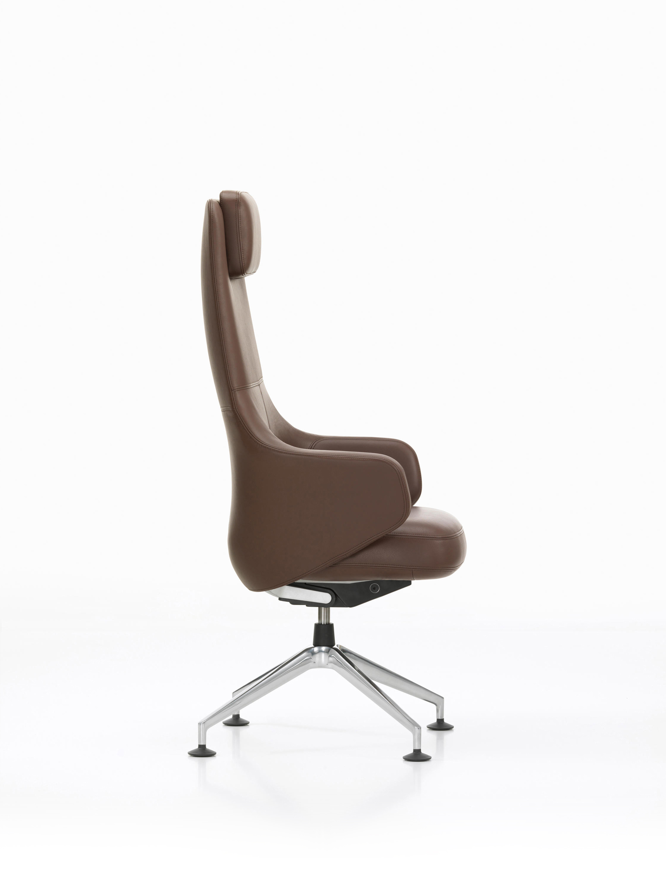 Grand Executive椅子结合了Grand Repos休闲椅的优雅,这是由Antonio Citterio为Vitra Home Collection设计的,具有现代办公椅的功能。 Grand Executive椅子的尊贵光环与时尚美感相得益彰。采用优质皮革制成,柔软的软垫内饰提供极致的舒适感。装饰性接缝凸显了椅子的手工细节,并勾勒出其体积结构。 FlowMotion机制可以适应个人用户,以确保每个坐姿的同步舒适度。 Grand Executive Highback模型配有可调节颈垫。