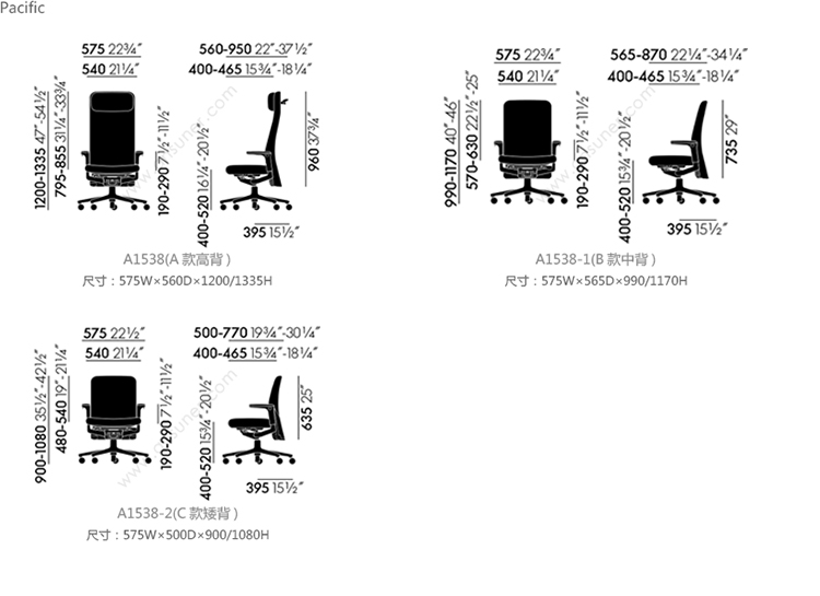 Pacific 职员椅 系列尺寸/示意图