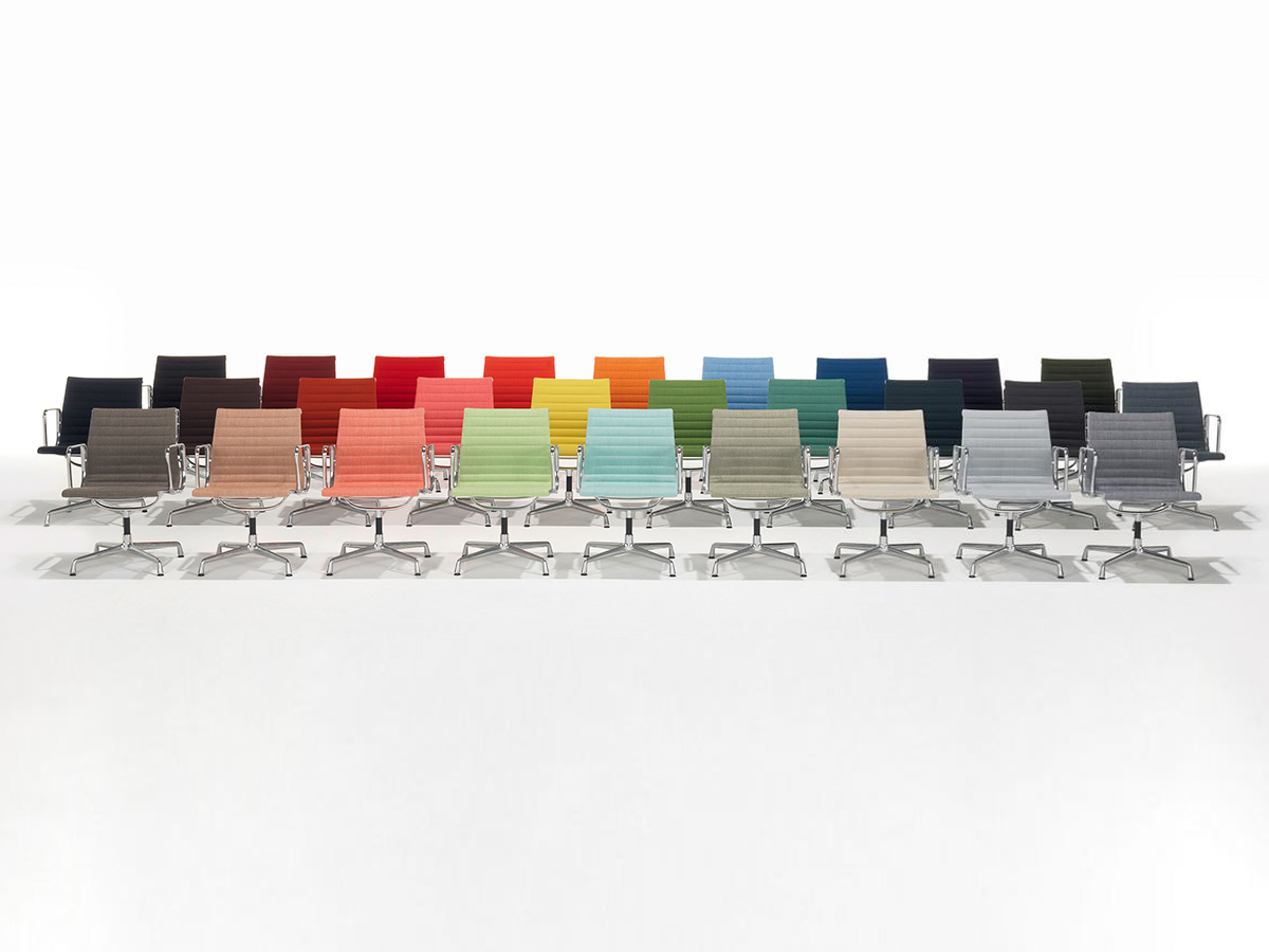 Charles和Ray Eames的铝椅EA 101,EA 103和EA 104非常适合与桌子组合使用:与铝组的其他型号相比,它们更轻,更高,更窄。 由于室内装潢具有多种柔和鲜艳的色彩,因此很容易找到适合任何餐厅的完美椅子。 这三种型号的不同之处在于基座的类型 - 固定或旋转 - 以及是否存在臂。