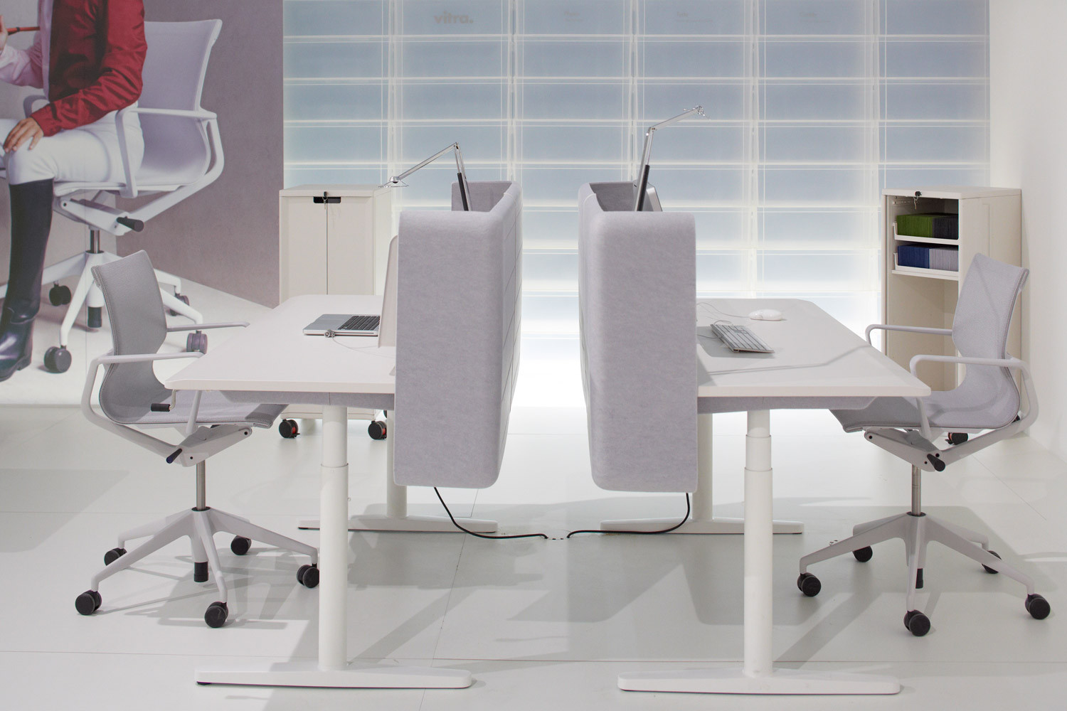 模块化办公桌系统CDS可以配置为单独的桌子,多个工作站的集群,宽敞的工作台或各种尺寸的会议桌。 所有产品均可在固定高度或手动或电动坐式解决方案中使用。 该系统采用标准底座设计,大部分预装有折叠腿。 这使得CDS能够满足对规划,使用,物流,装配和维护灵活性的最严格要求。