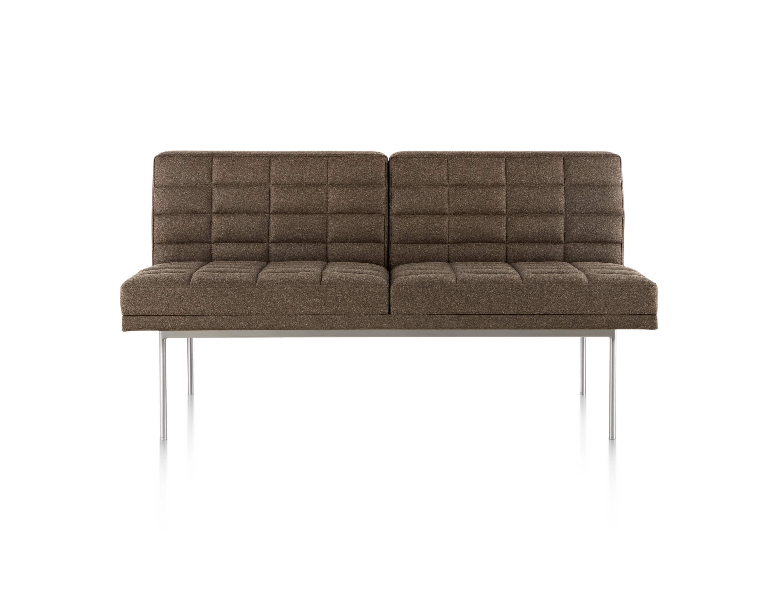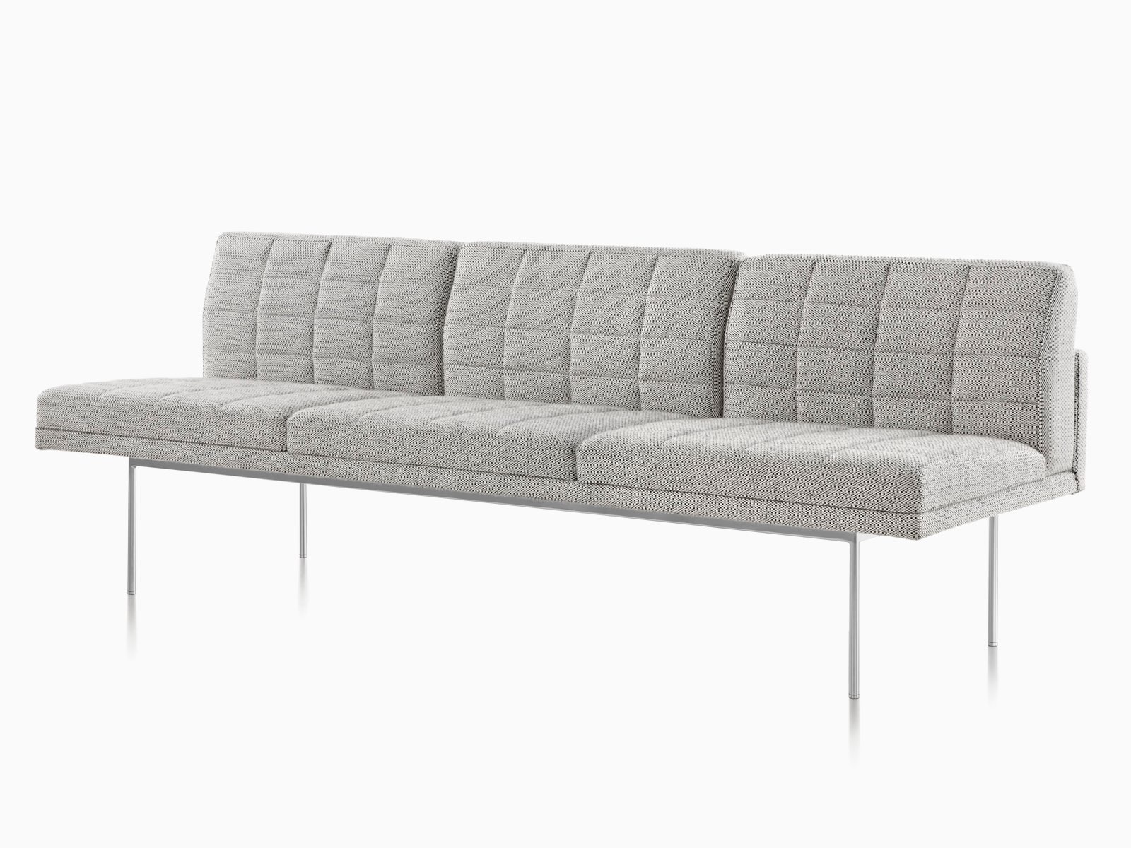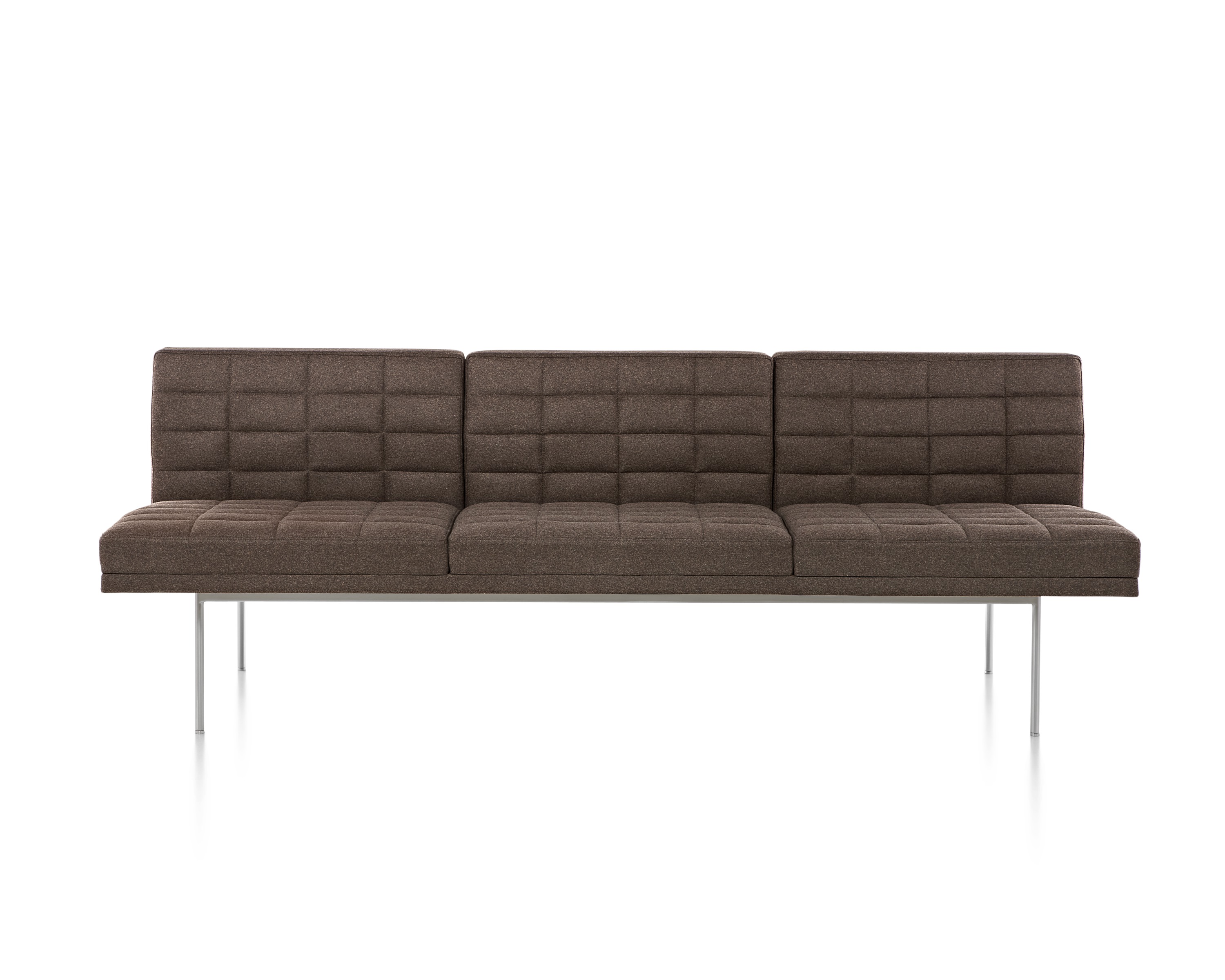 Tuxedo沙发悬挂在狭窄的钢腿上,有多种金属饰面可供选择,由于背部和(可选)臂形成的水平带,Tuxedo Sofa的轮廓低而光滑。精心设计的室内装潢覆盖了纤薄的双密度泡沫垫,进一步增强了设计的轻巧外观。每件都有各种各样的室内装潢,有或没有绗缝。