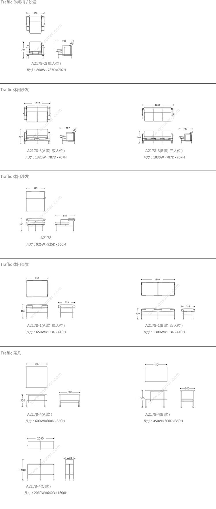 Traffic 系列尺寸/示意图