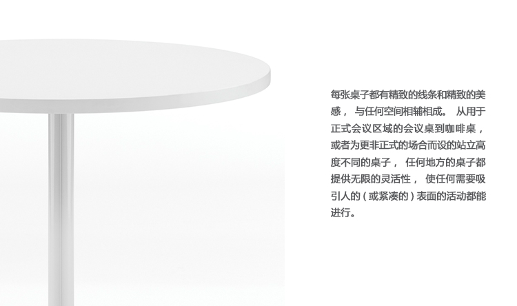 每张桌子都有精致的线条和精致的美感,与任何空间相辅相成。从用于正式会议区域的会议桌到咖啡桌,或者为更非正式的场合而设的站立高度不同的桌子,任何地方的桌子都提供无限的灵活性,使任何需要吸引人的(或紧凑的)表面的活动都能进行。