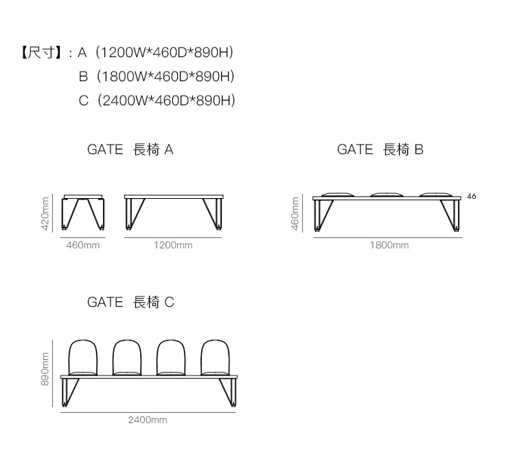 GATE 长椅 系列尺寸/示意图