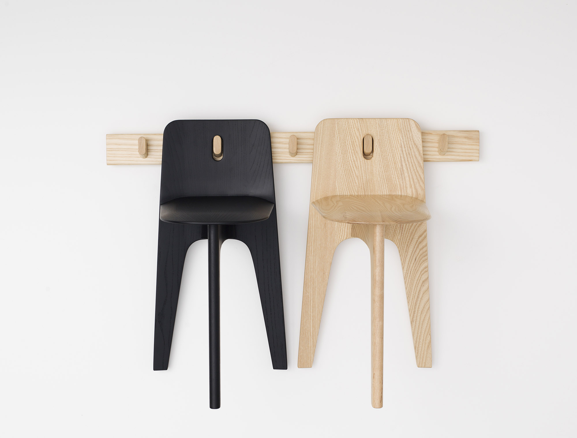 Stove _凳子。实心白蜡木漆成清漆或漆面。包括清漆白蜡木墙钩,一个/凳子