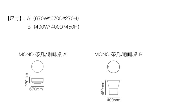MONO 茶几/咖啡桌 系列尺寸/示意图