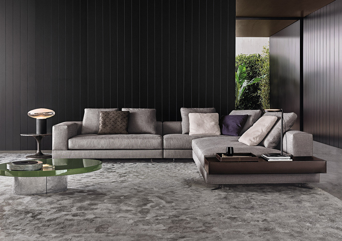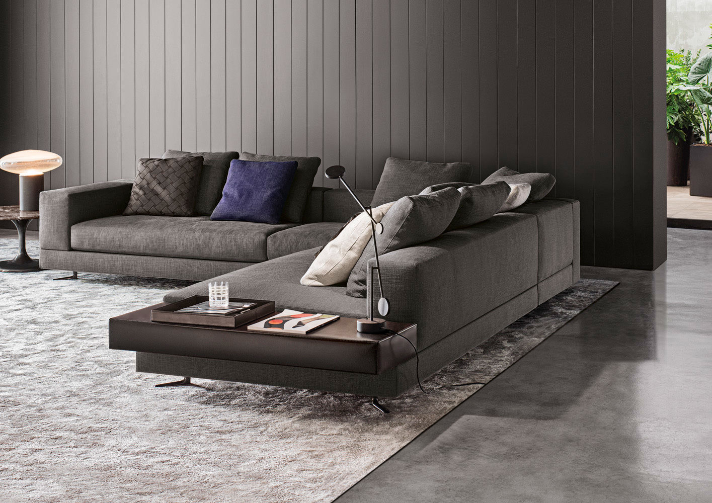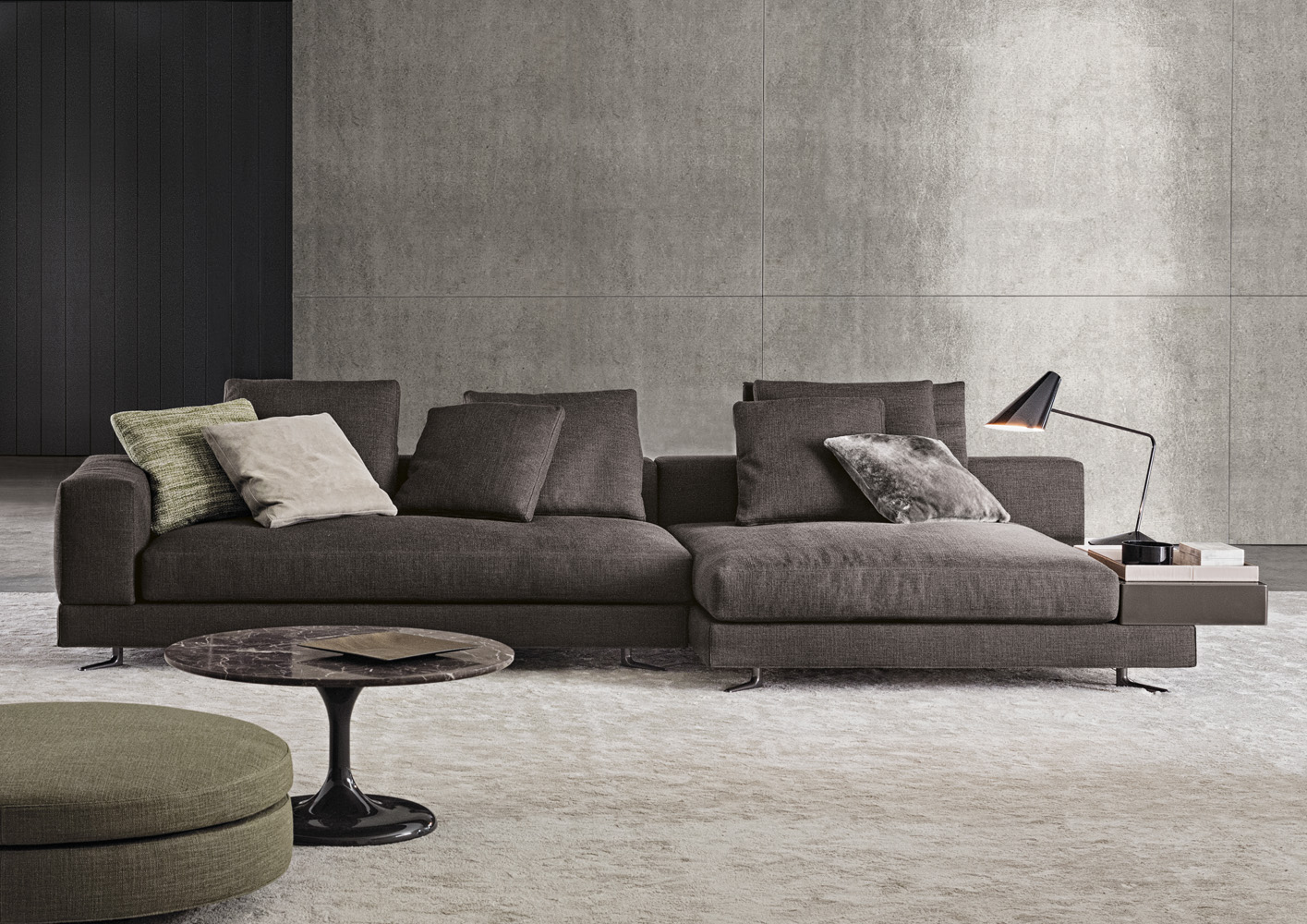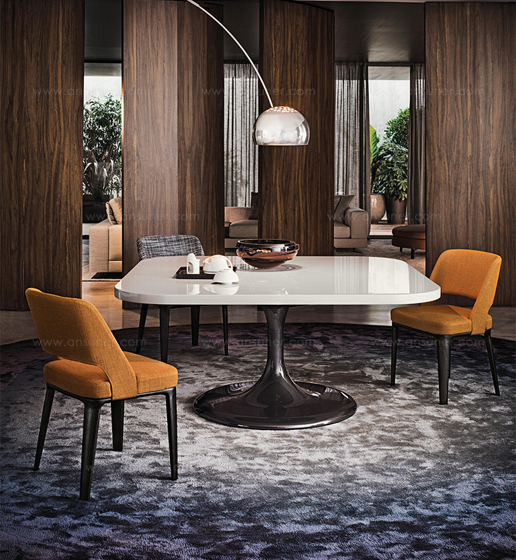 Neto是一组咖啡桌系列,有不同的高度可供选择,此外还有三种直径的台面以及三种不同的材料-颜色组合。如果基座和台面使用相同的颜色亮光漆(白色或Pewter色),以此来展现造型的纯粹感;另外,无论是基座为Pewter色,台面为Marron Damasco大理石的版本;还是基座为白色或Pewter色,台面为亚光漆面的花梨木的版本,两者都强调木材和石材这两种材质的珍贵性。“全白”版本则展现出Neto咖啡桌的可塑性。在亚光漆面的花梨木版本中,台面下方使用与聚氨酯基座相同的颜色,采用Minotti Studio的独家设计。技术与设计内涵在咖啡桌上展露无遗,体现出十足的个性,使其能够搭配系列中的任何沙发座椅。这款极具功能性的休闲凳属于Neto家族,基座材质为聚氨酯,漆面颜色为Pewter色,上方部件则添加填充物,包覆Minotti独家系列中的布料和皮革。Neto休闲凳是搭配LANE边几的理想之选,实际上,它也是一款万能单品,在任何环境中都能自如地展现魅力,与系列中的任何产品搭配都毫无违和感。