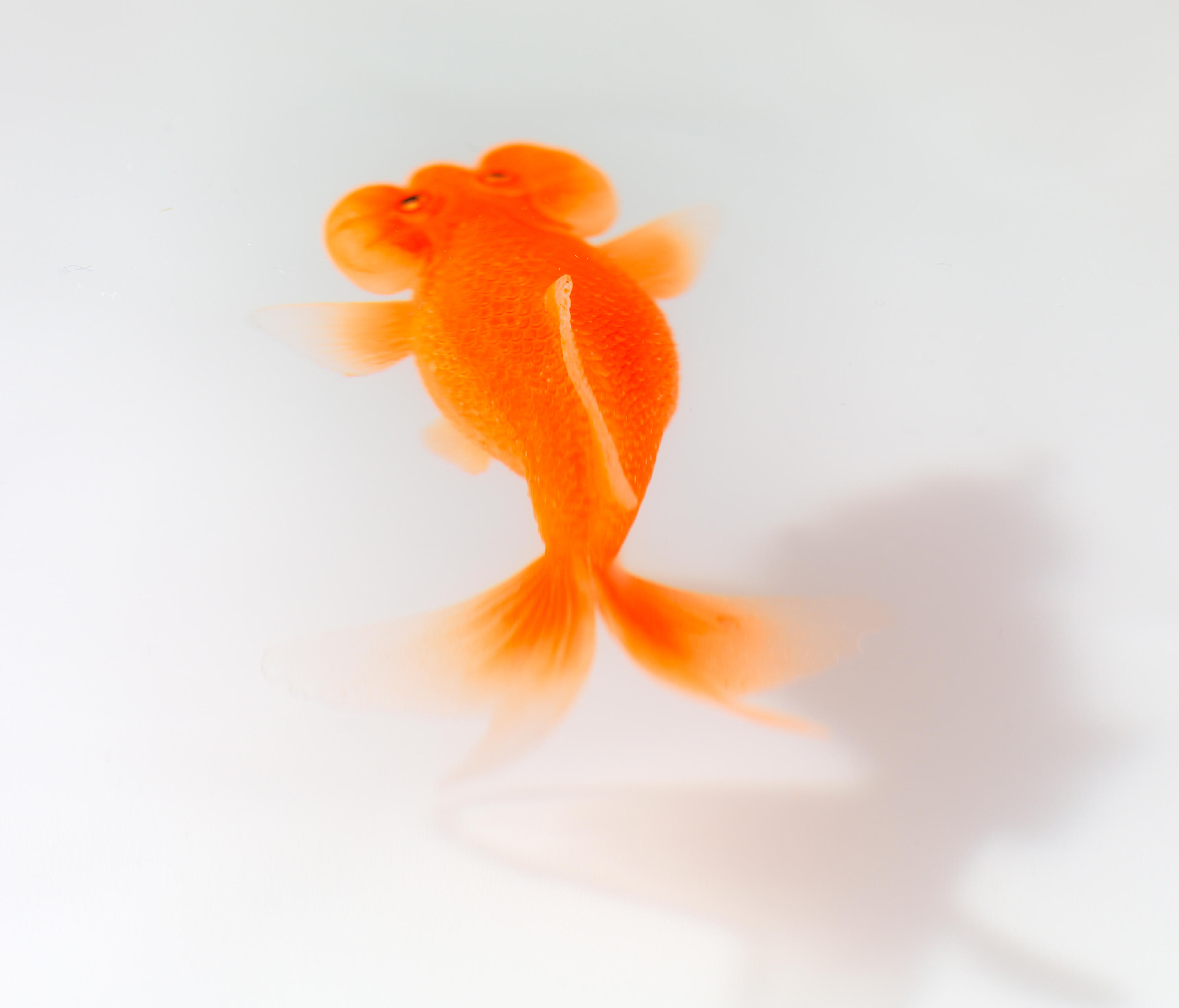 奇异空间的微妙选择,鱼漂浮在漆成的圆柱体中,除了自身外没有其他装饰。