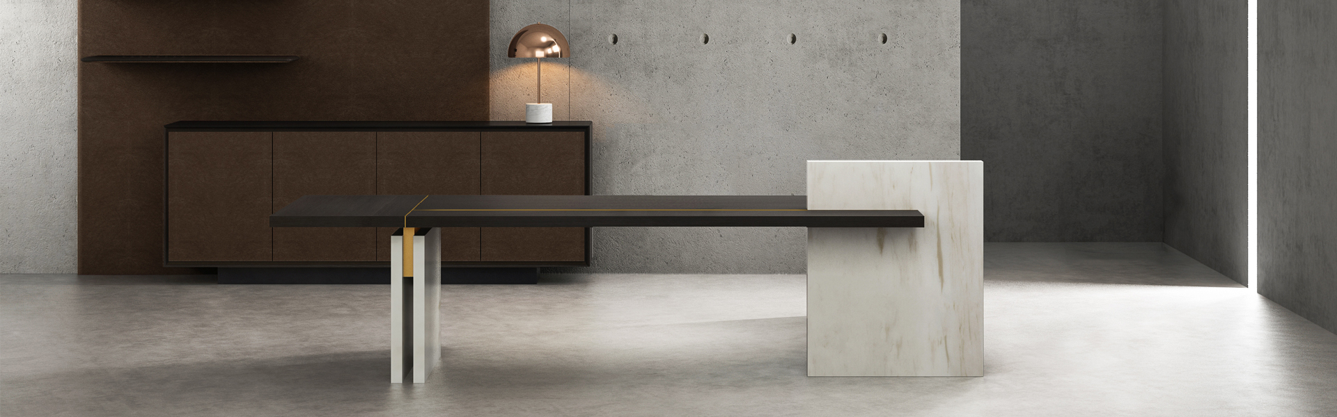我们采用传统的实木与优质皮、大理石、黄铜等特殊材质相 结合,创造出具有东方设计新理念的产品系列。 在形与用、质与艺、素朴与繁复的探索中,通过干净利落的 外形演绎了使用者内在的思考和态度。