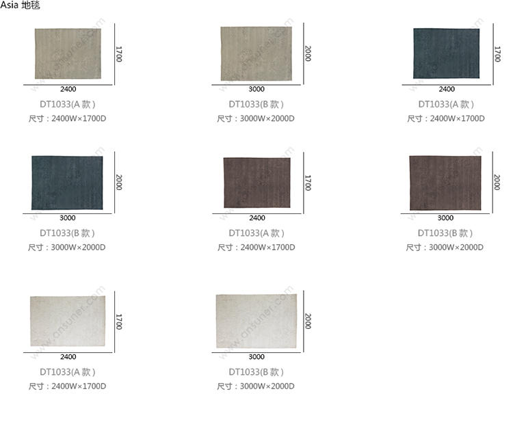 Asia 地毯 系列尺寸/示意图