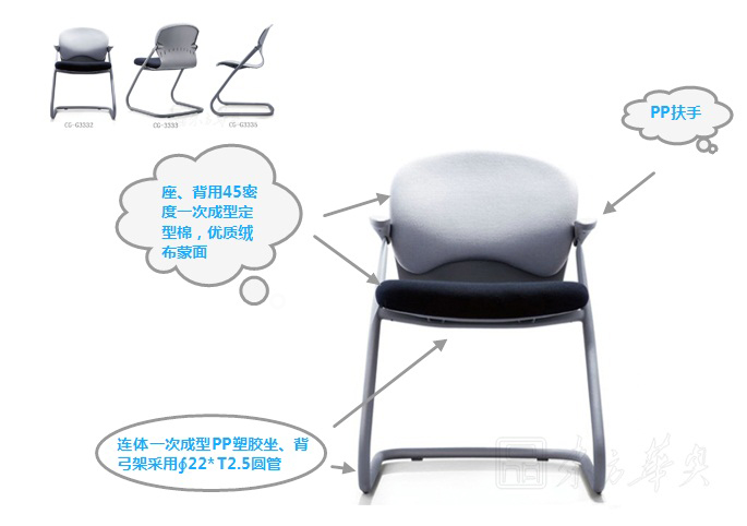 ※温馨提示: 会议椅 CG-G3332的图片颜色已尽量接近实物,但因为拍摄时的光线、显示器的分辨率不同等因素,会议椅 CG-G3332会存在一定的色差,请您谅解。