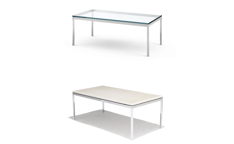 Florence Knoll Coffee and End Tables,designed to furnish the new interiors of postwar America,are scaled-down translations of the lines,gestures and materials of modern architecture.Consistent with all of her designs,the tables have a spare,geometric presence that reflects the objective perfectionism and rational design approach Florence Knoll learned from her mentor,Mies van der Rohe.