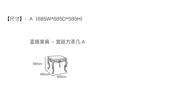 亚振家具 - 宫廷方茶几 产品尺寸/示意图