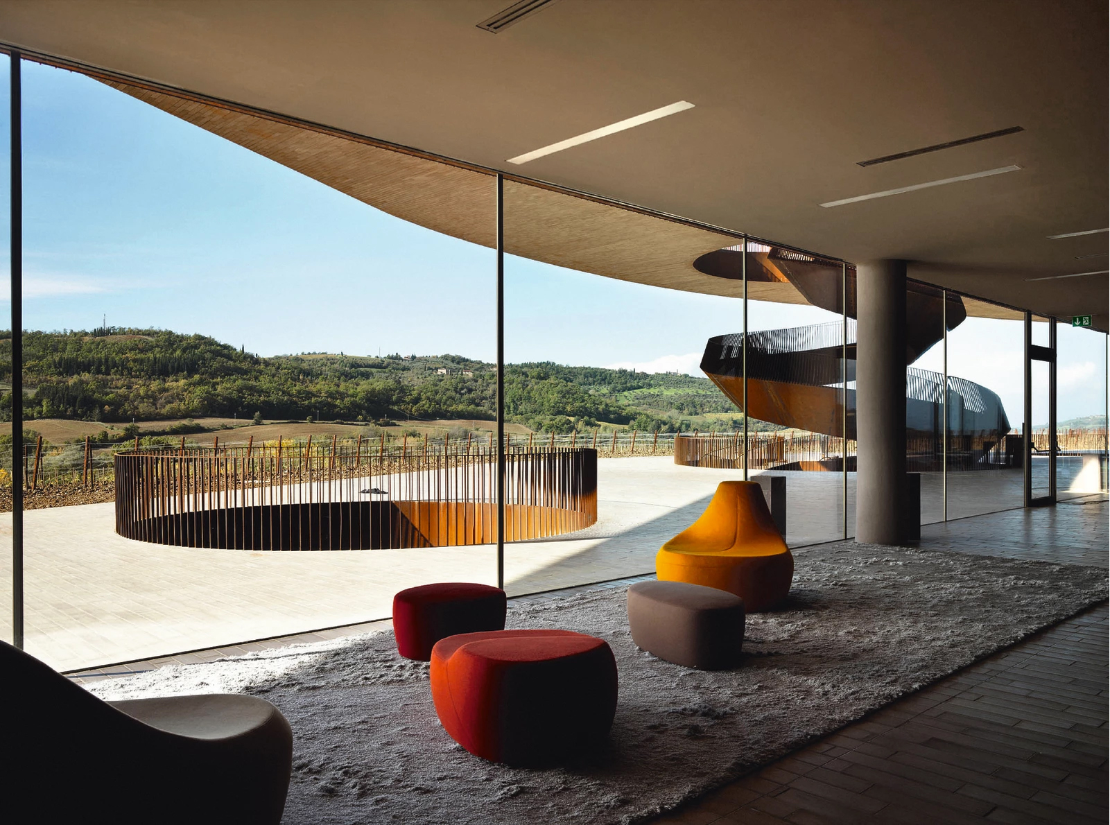 第一个Saruyama,它的地貌形态,一个非常抒情的物体,是由三个模块组成的,它们结合在一起,形成一个巨大的圆形岛屿,不同的一个从另一个中提出对座位的自由诠释。