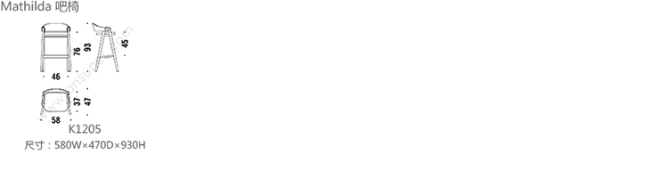 Mathilda 吧椅 系列尺寸/示意图