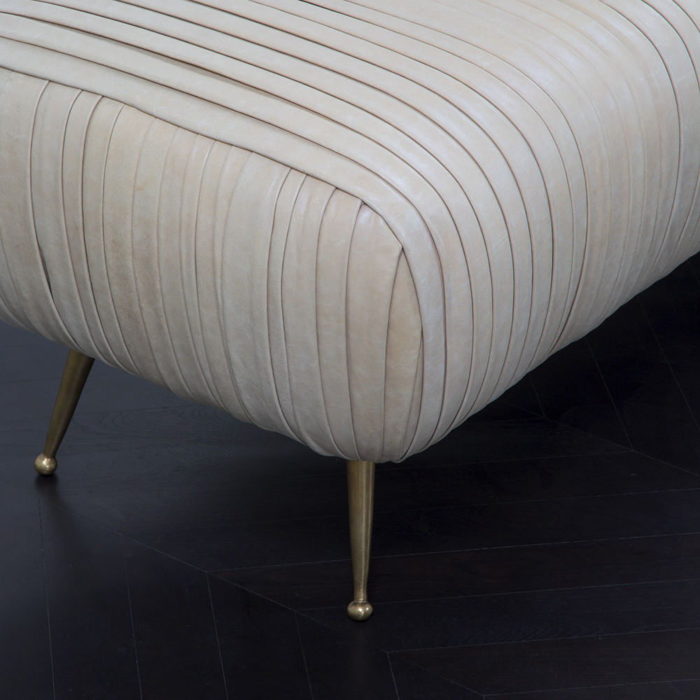 Souffle Bench的精致线条采用标志性皱折皮革细节设计。 全面的蔬菜染色小羊皮手工缝制在框架上。 这款精致细腻的豪华长凳坐落在坚固铸青铜的锥形腿上。 精致的比例非常适合入口通道,床尾或餐凳。
