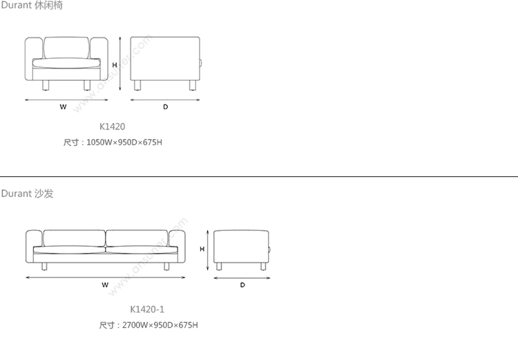 Durant 休闲椅 系列尺寸/示意图