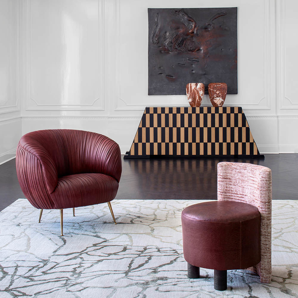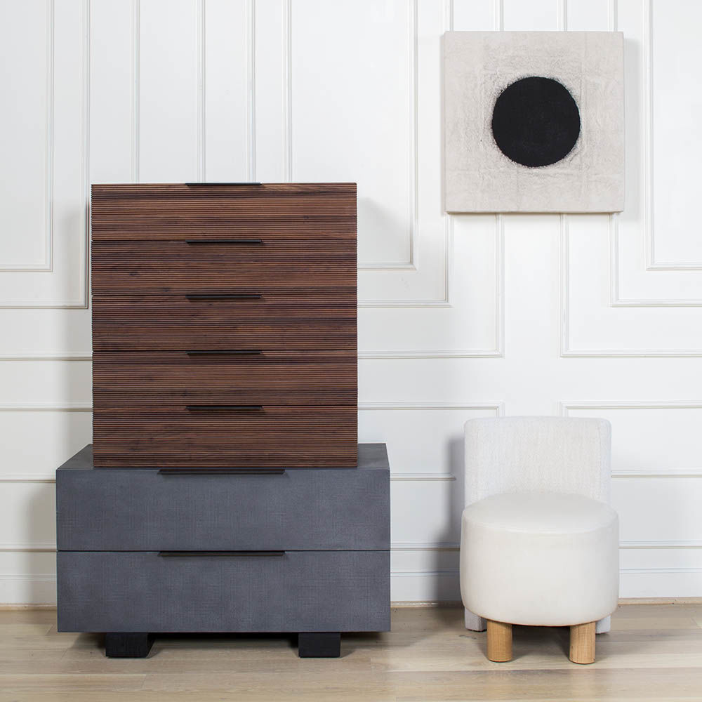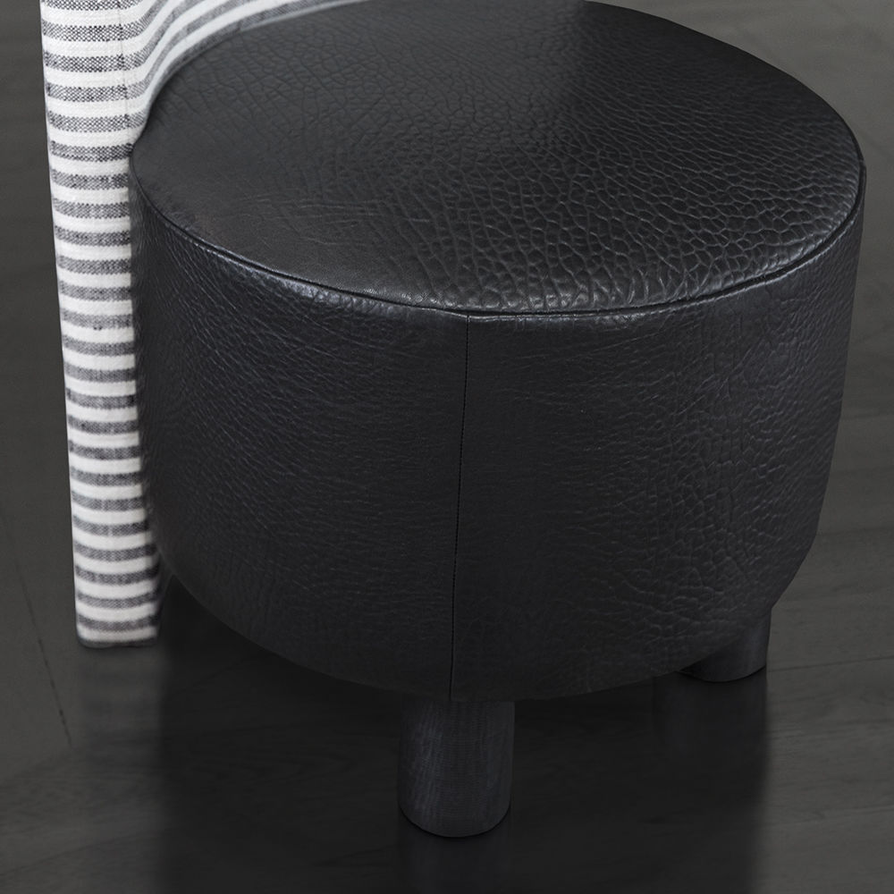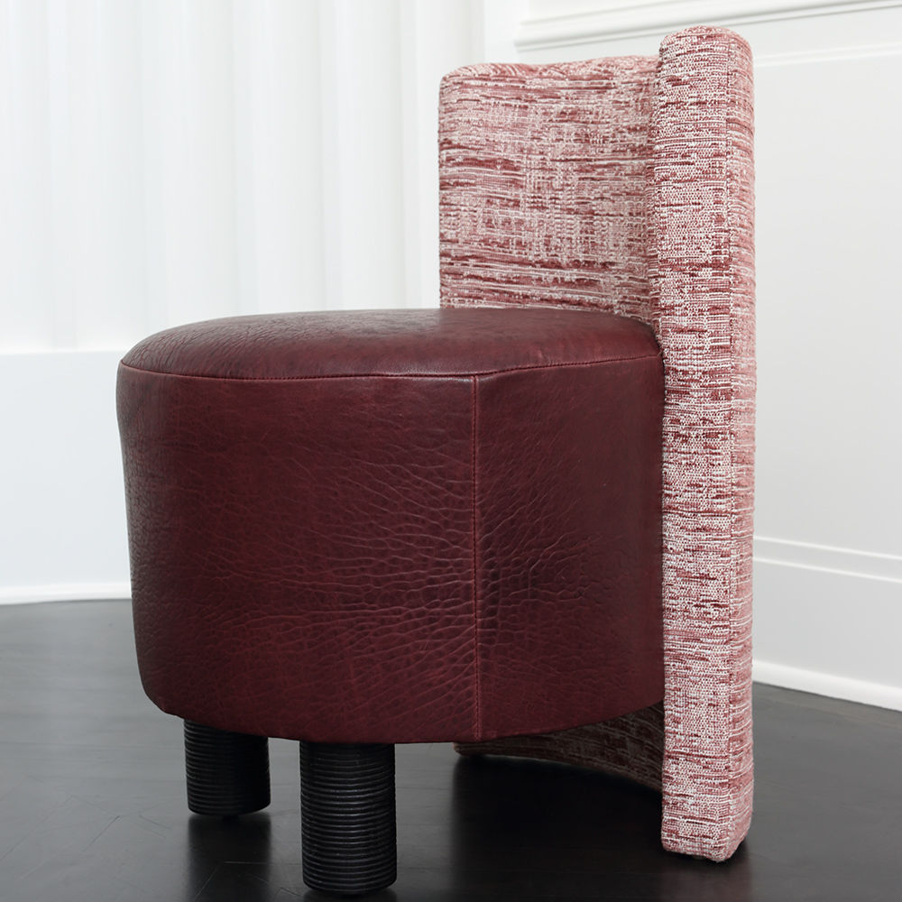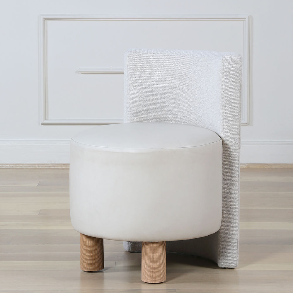 这种低矮的椅子或凳子结合了一些简单的体量和纹理,创造了一个戏剧性的临时座椅。鼓形座椅与垂直的背部相接,形成后肢,椅子的前部位于一对粗壮的圆柱形肋腿上。 这是梳妆台或休闲客厅布置的理想座位选择。 腿部饰面选项包括漂白,天然和黑檀木。 提供精选面料和皮革。
