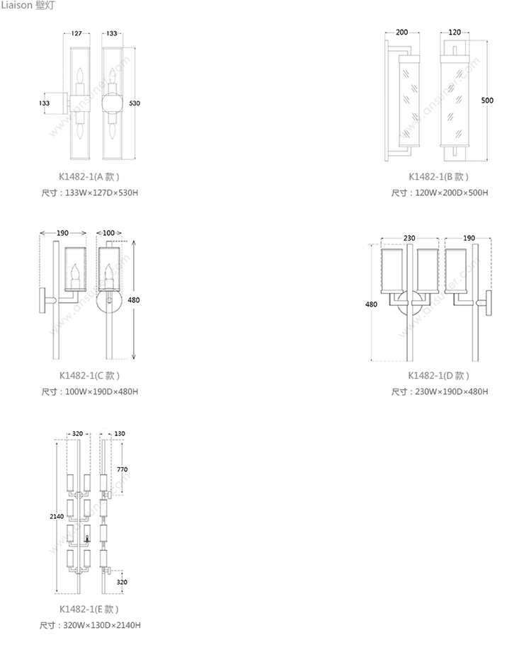 Liaison 壁灯 系列尺寸/示意图
