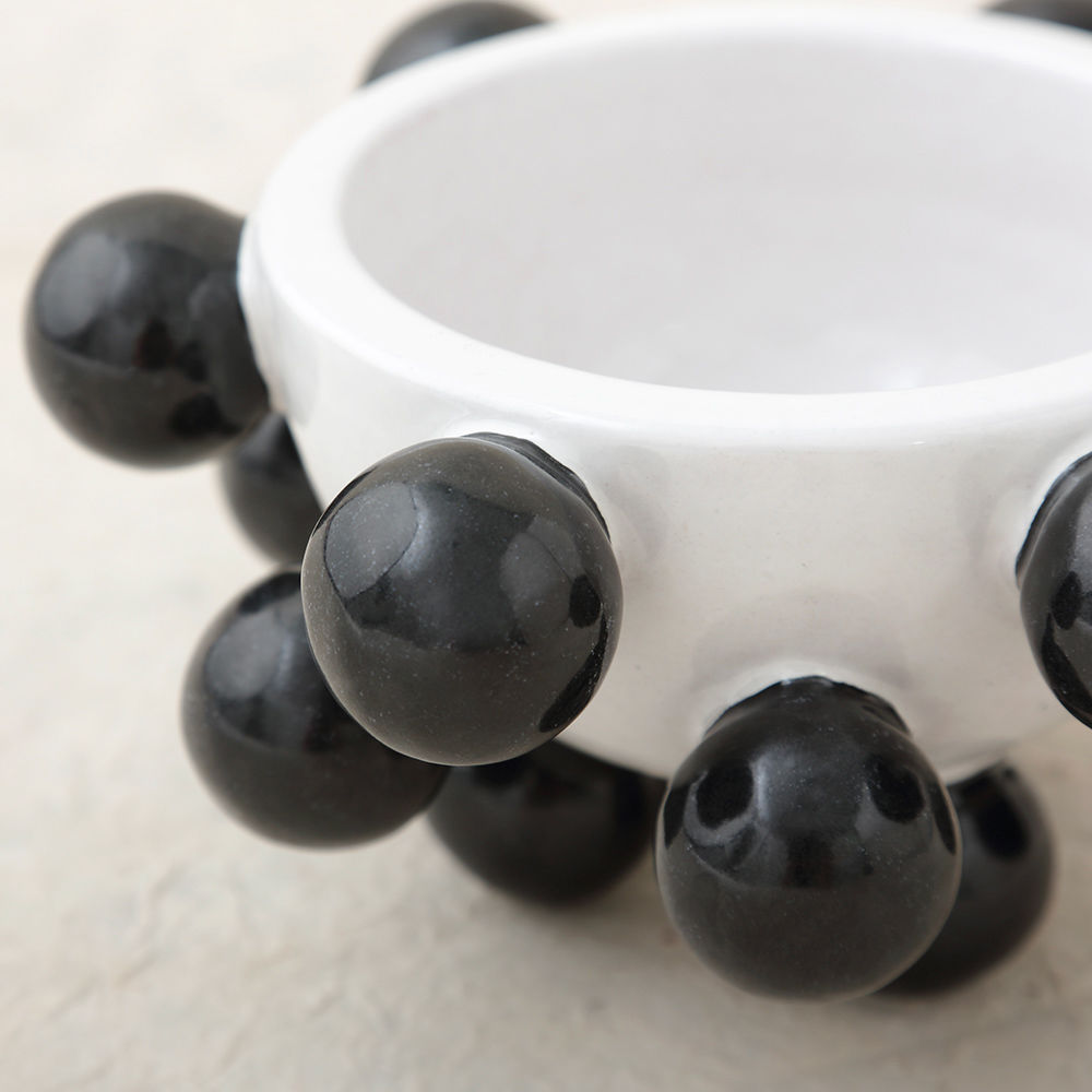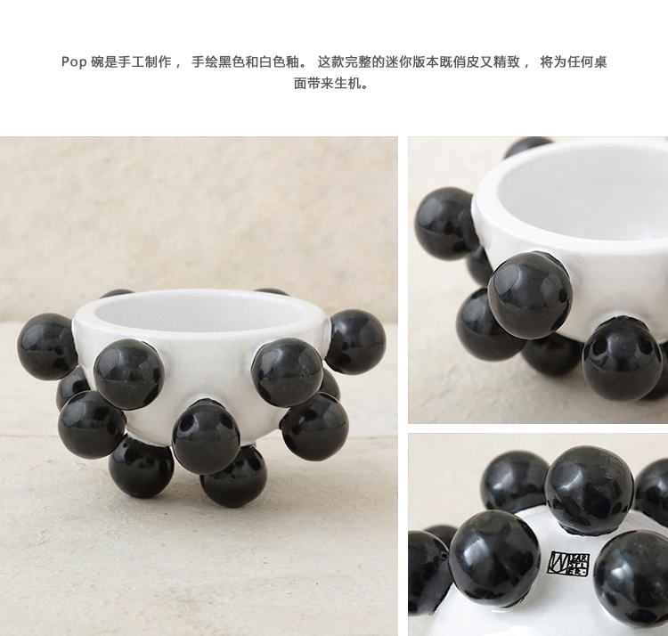 我们的流行碗是手工雕刻和手绘的哑光黑色和白色釉。有趣而又复杂,这款产品将给任何桌面带来活力。