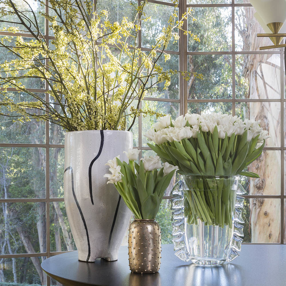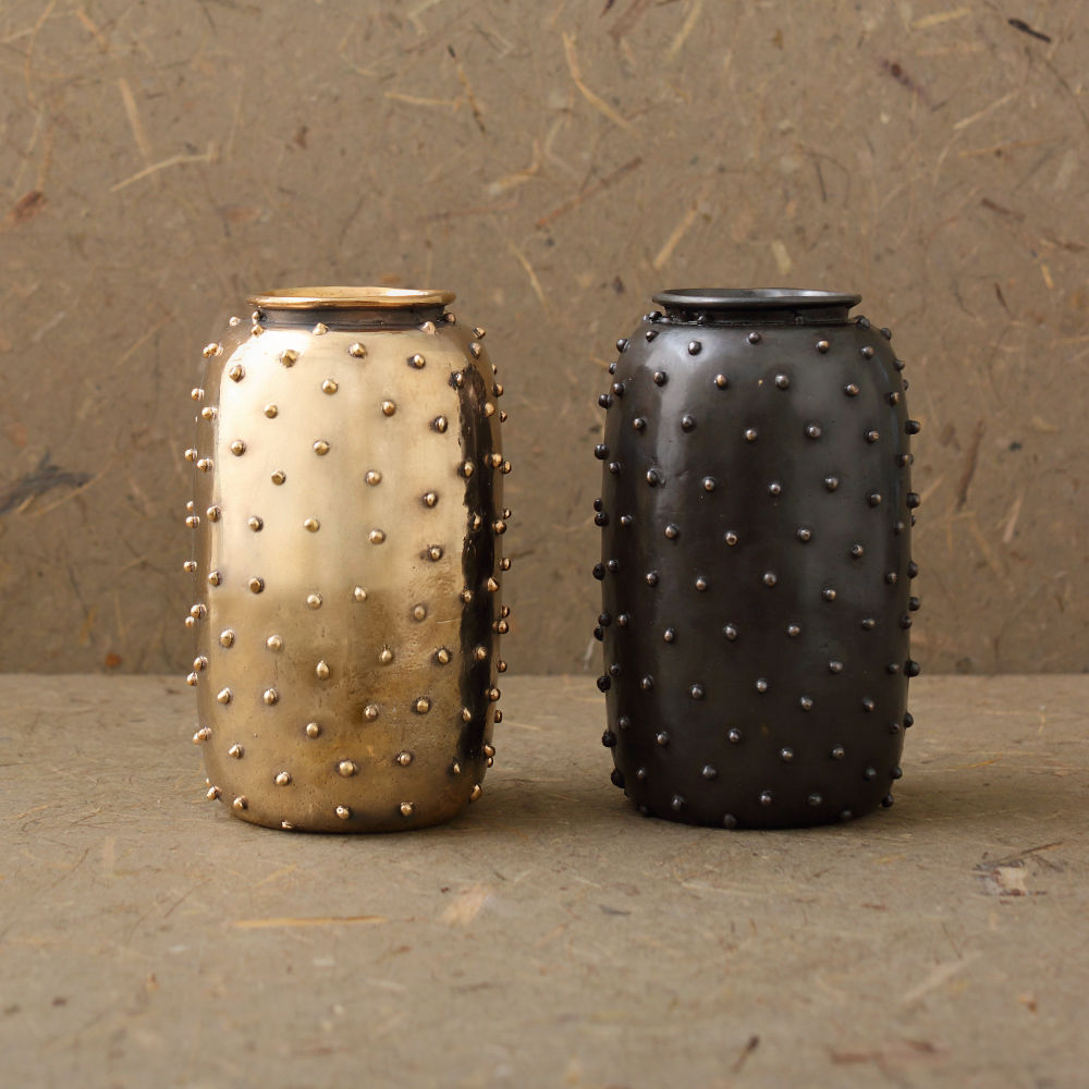 Studded花瓶是一款引人注目的精致配饰,具有性感的摇滚韧性。 这款花瓶由洛杉矶的工匠手工雕刻而成,并采用引人注目的油擦黄铜饰面。