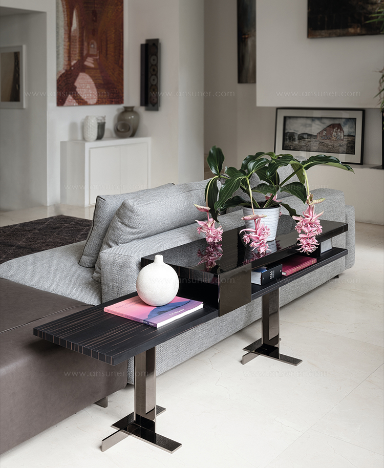 多种配件材料的爱尔斯是多功能的:可以放在墙边或沙发后面,而小桌子可以用作沙发扶手旁边的边桌,也可以用作服务桌。