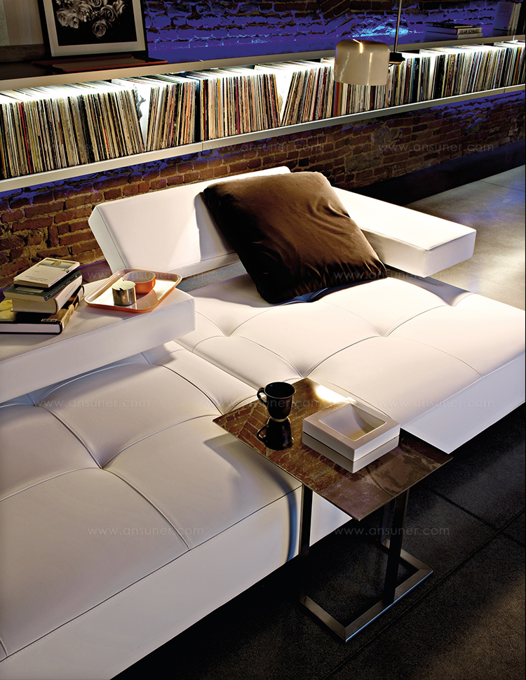 矩形形状的不锈钢咖啡桌,作为阁楼沙发的补充服务元素,它们可以自由地和沙发或扶手椅进行组合。