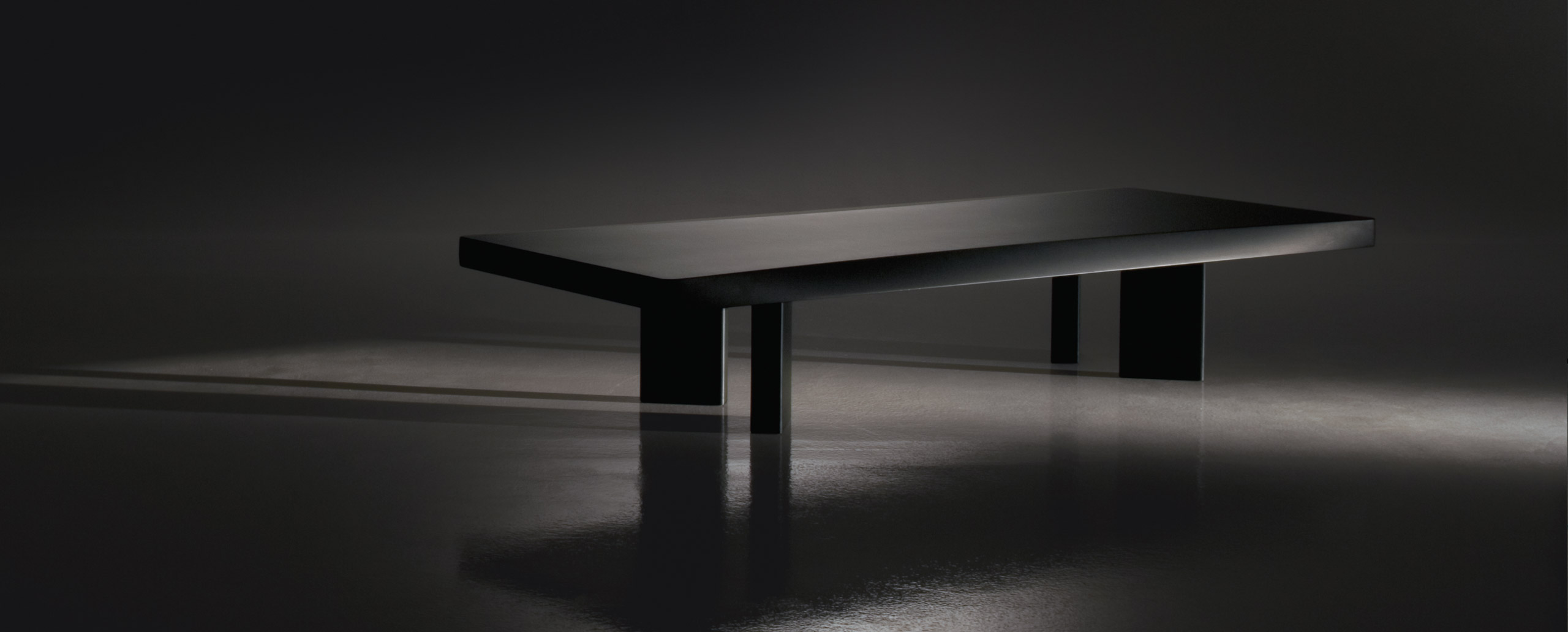 采用哑光黑色的珍贵木材或黑色实木橡木或美国黑胡桃木制造的矮桌。桌面厚度和凹面刻画了正式用语中的模型特征,并创造了令人讶异的轻盈感。该款矮桌是于1969年为日本驻巴黎大使馆设计的,这款咖啡桌是技术和中继合成的胜利。
