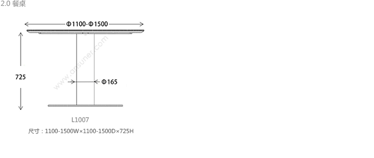 2.0 餐桌 系列尺寸/示意图