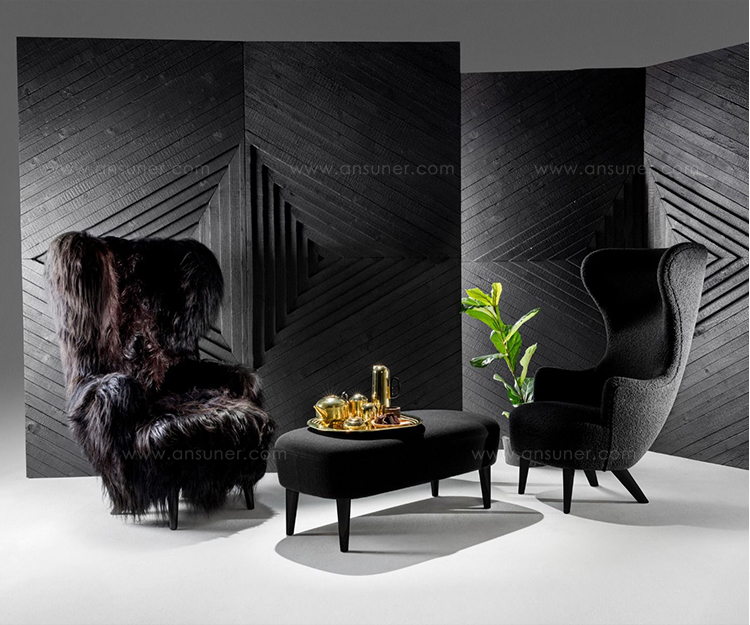 这款长脚凳被设计成与脚背沙发一起使用,以增加滑稽的层次