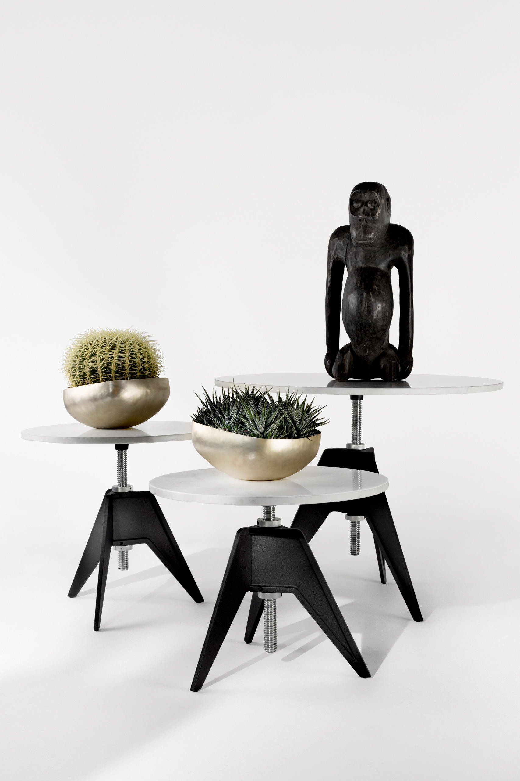 螺丝台是一种简单,诚实的设计,灵感来自工业革命的材料和工艺。 其旋转顶部位于螺纹钢杆上,可调节高度,同时坚固,耐用,优雅,非常适合在室内和室外使用。 也可作为边桌和黑橡木,气相橡木,天然橡木,天然桦木,白色和绿色大理石台面。