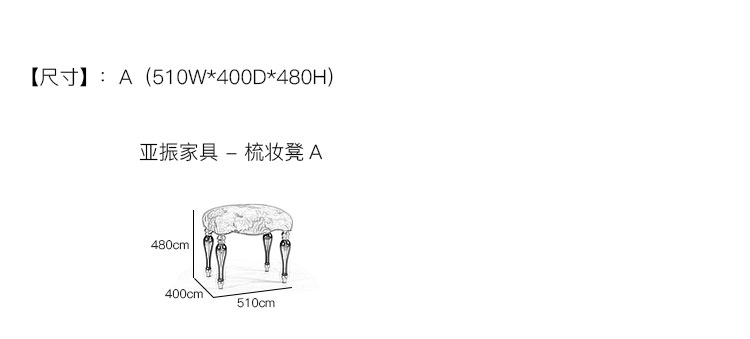 亚振家具 - 梳妆凳 产品尺寸/示意图
