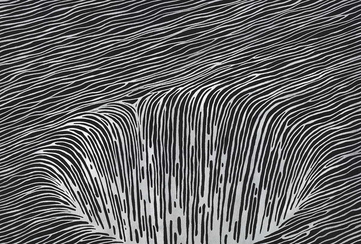 空间几何系列以点线面的构成作为创作主题,利用不同的构成方式,创造多样化的视觉效果,我们放弃了具体的内容和情节,突出运用这些纯粹的绘画语言来表现艺术形式的纯粹美;点、线、面和构成手法,就像是大厦的基石一样,看起来毫不起眼,但力量却无比强大,它是我们不断探索的源泉和情感表达的桥梁