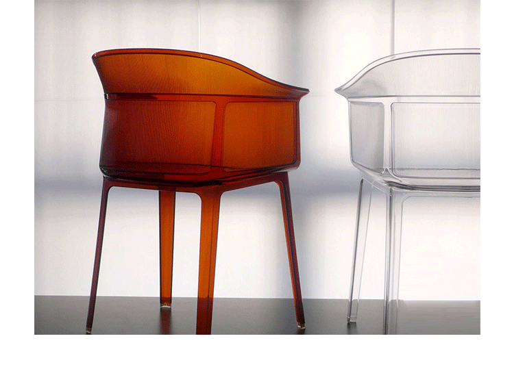 Papyrus Chair(纸莎草椅)是由Ronan & Erwan Bouroullec法国兄弟设计组合于今年为Kartell公司设计,并且在本次的米兰家具展中进行了展出。该设计的灵感来自于一把结构鲜明的古老座椅Linear,座椅本身非常舒适且重量很轻。其共有透明、黄、绿、紫、烟灰、棕、蓝和红八种颜色。这把椅子结合半透明的脚架,脚架“打磨”纤细的卵石状颗粒,并延伸至整个靠背的外轮廓,线条柔软和舒适。和整个结构都是透光的。因惊喜的做工和颜色的运用,使其非常吸引人。