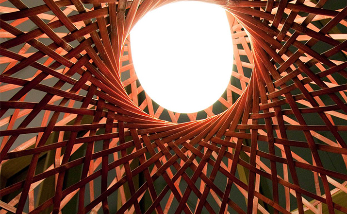 "Once upon a time an asian emperor received as a gift a nightingale. The charming bird sang so beautifully that the emperor always wanted it by his side. He placed the nightingale a majestic hand woven bamboo cage in the imperial chambers and listened, enchanted, to the magic sound" Material: Bamboo rattan cage, aluminum frame and glass diffuser Additional: Each cage is woven by hand And therefore has a unique character.