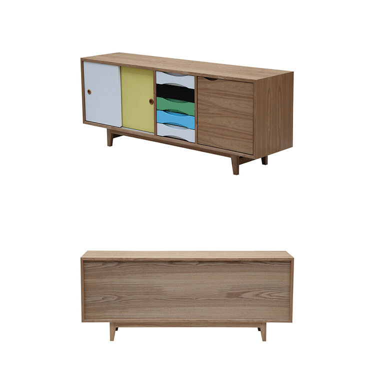 vodder sideboard(vodder餐具柜),Arne Vodder设计的作品,是Kardiel公司制作的经典实木家具,具有世纪中期的现代风格,加了少许复古现代主义色彩于其,微妙的局部拱曲线呈现在右手面对推拉门和5个拉出抽屉。在现代主义的存储家具上,Finn Juhl和Arne Vodder最先尝试胶木和天然木的组合运用。这是大胆的创新,他们结合传统的新鲜的新兴技术与现代主义的概念。制作采用精选MDF板基材胡桃木或水曲柳木皮贴面、胡桃实木或水曲柳实木脚架、环保油漆喷涂、做工精湛,是您理想的选择。