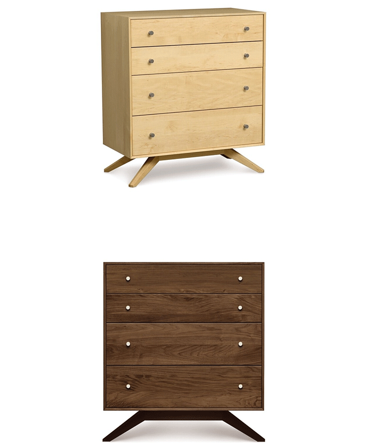 astrid 4 drawers dresser(阿斯特丽德4抽梳妆台)是Copeland Furniture公司astrid实木梳妆台系列之一,宽大的八字形脚架非常吸引人注目,制作并非易事,它其实是一个大工程,同时能引发无限期望和激情,4个平滑抽屉,可以给与提供许多存储空间。制作采用精选MDF板基材、进口美洲胡桃或水曲柳或枫木皮贴面、实木脚架、环保净味油漆喷涂、做工精湛。