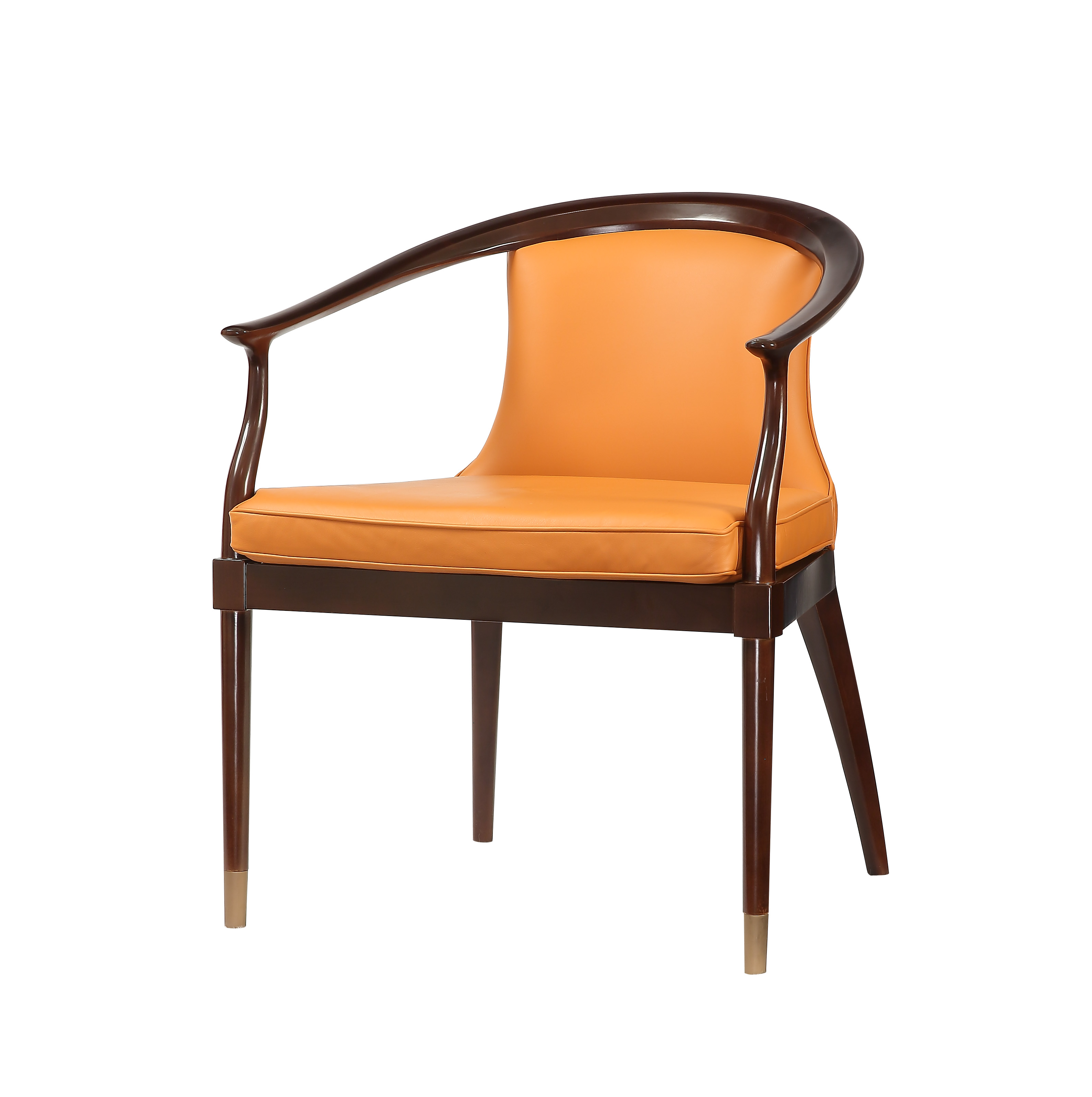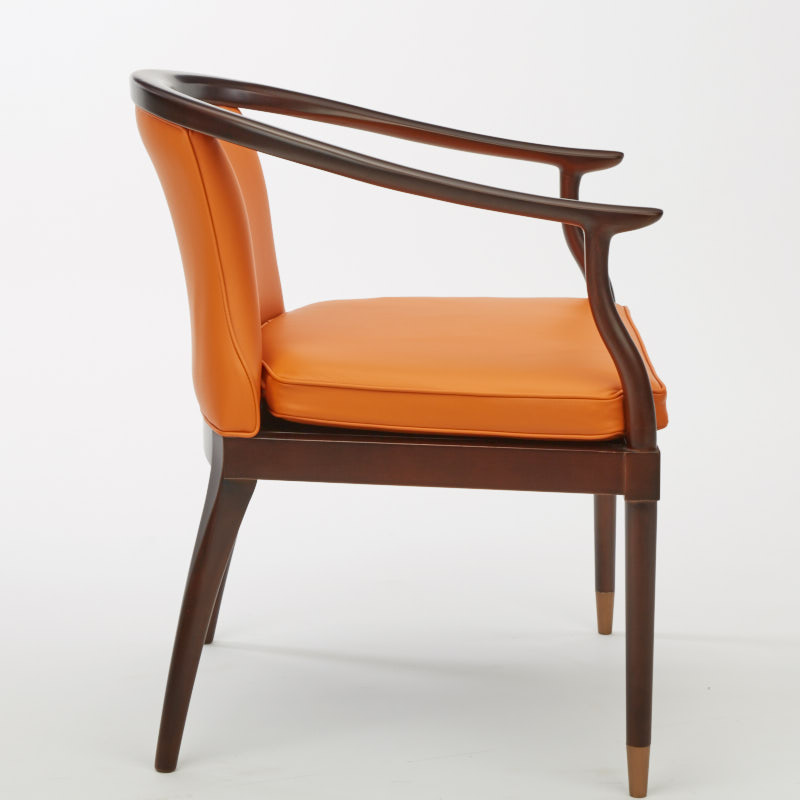 皮包饰工艺,由经验丰富的技师手工独立完成,确保美观、耐用又符合人体工程学;铜脚,赋予中式韵味的同时以防磨损。中国圈椅的改良设计,线型流畅、简洁;爱马仕橙彰显了生机勃勃的活力;皮质坐垫增加舒适感。