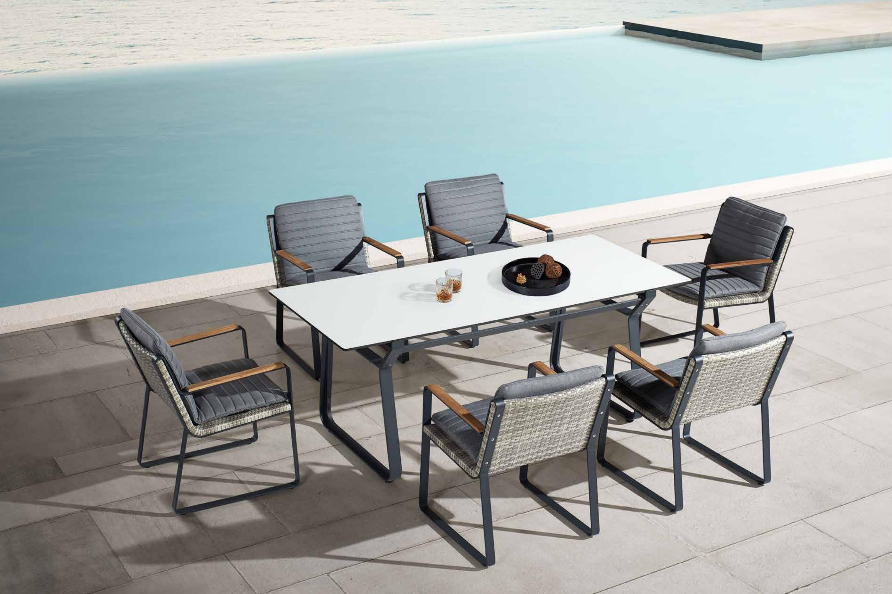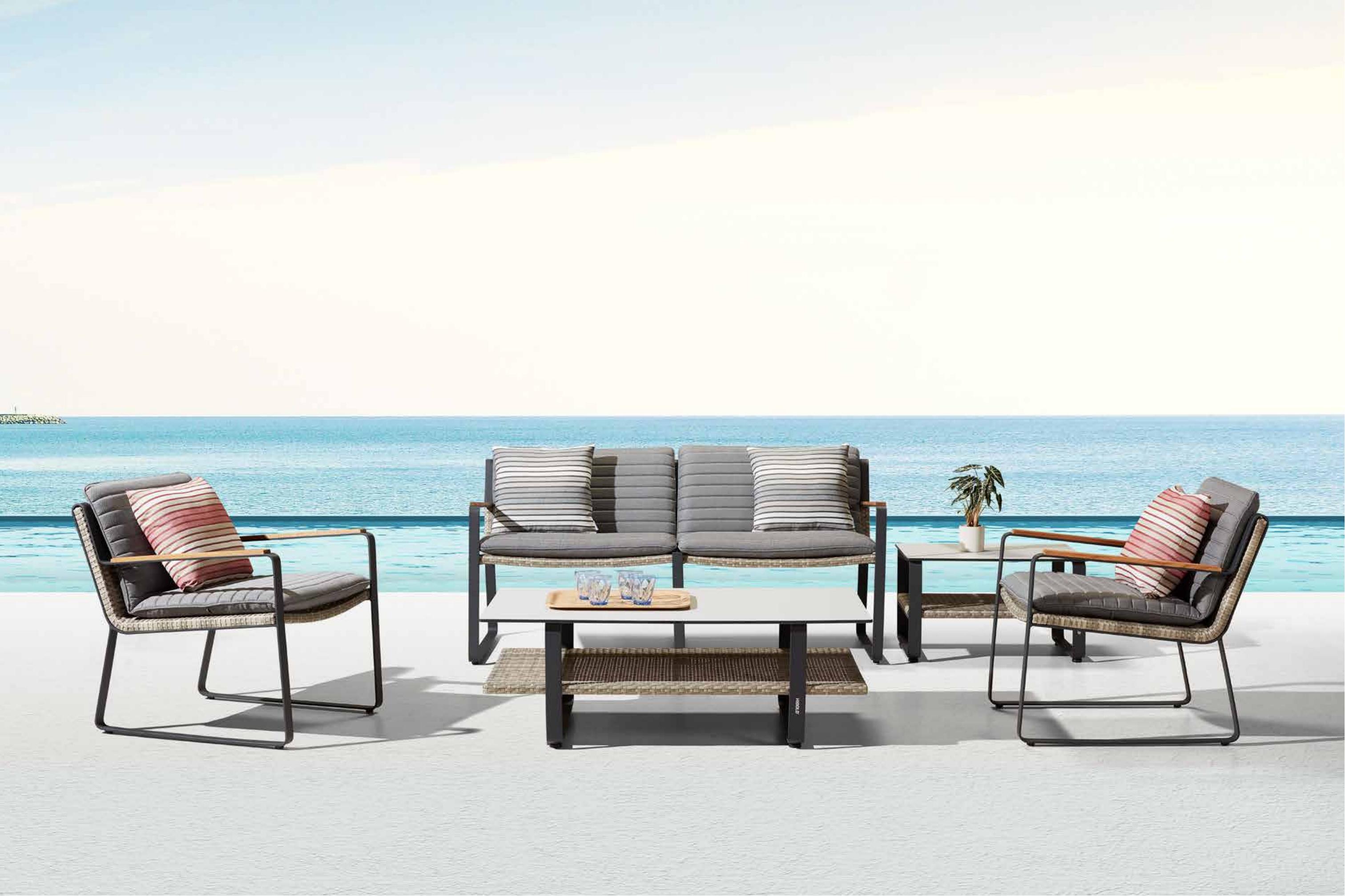 卡拉克户外休闲系列的设计宗旨在于从简单结构中保持特有舒适度。 齐平的管与管的衔接,没有丝毫焊接痕迹,这在户外家具的铝结构中鲜少能见。 卡拉克户外休闲系列的另一个独特之处在于,细腻的编织结构被金属外管紧紧相拥,这一工艺在同行业家具是具有创造性的应用。 卡拉克户外休闲系列,他是户外家具工艺的凸显臻品,搭配上车花条纹形的软包,是您尊享惬意户外阳光的极佳选择。