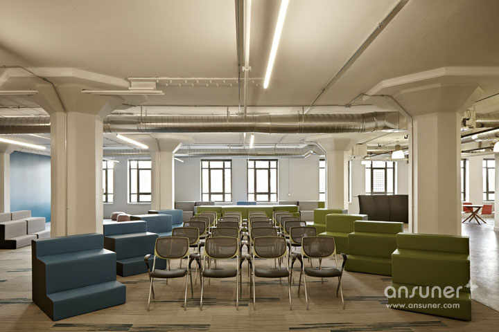 Runway社区,新兴创业者的孵化基地。设计的挑战在于如何将其打造成一个热情且具特色的办公空间,使其在众多同行中脱颖而出。设计团队以前卫的设计概念将这座位于Twitter大楼占地30,000平方英尺的孵化基地打造成一个时尚的社区,而非仅用以工作的办公场所。刚起步的创业者可租用一套桌椅或400平方英尺的区域空间。