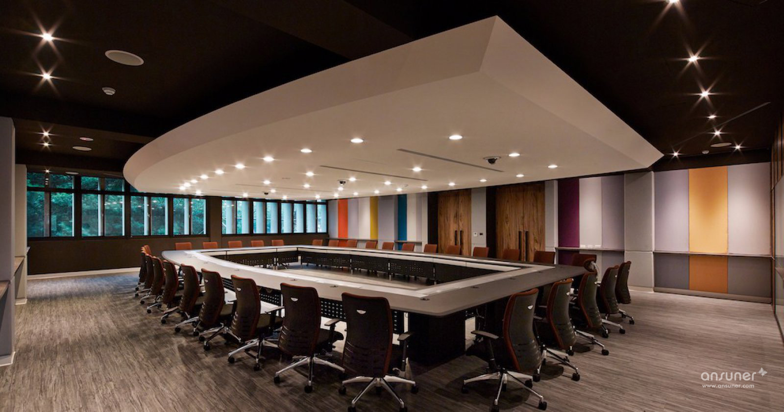 通透的梯厅,多功能的会议室,当门片全部开启时,光线自由篡流,阴霾一扫而空。